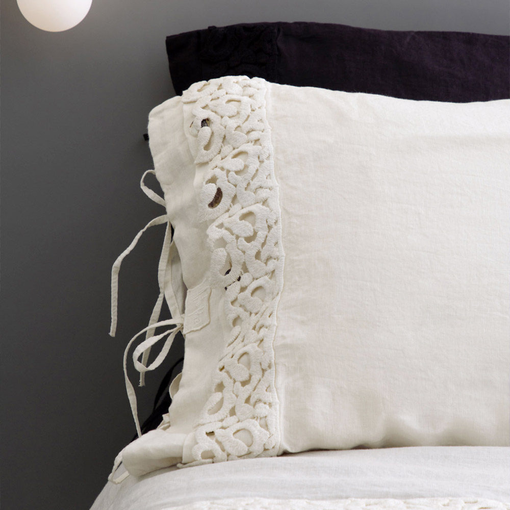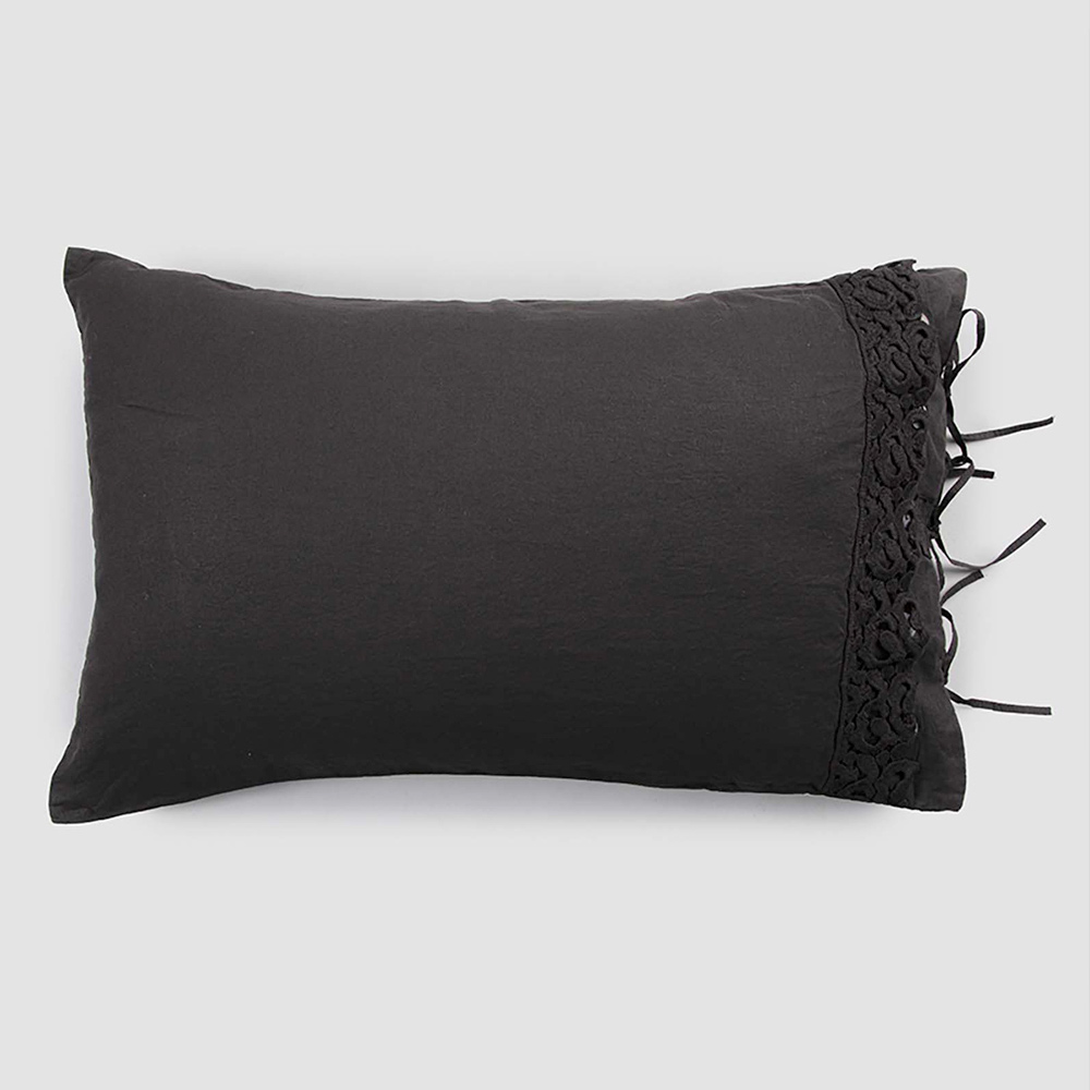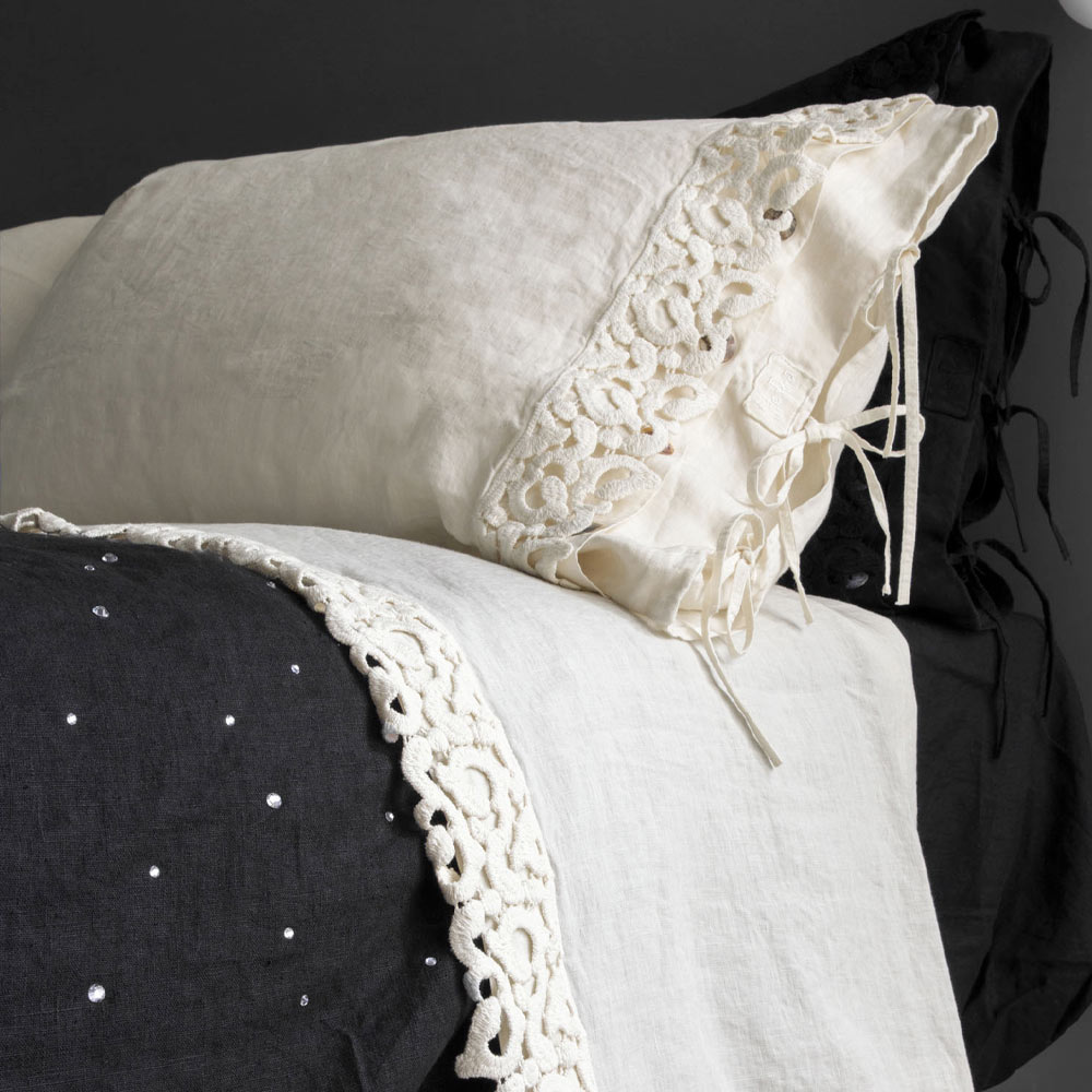 Kussensloop in zwart linnen of boter met gedichtkant, luxe artikel gemaakt in Italië.