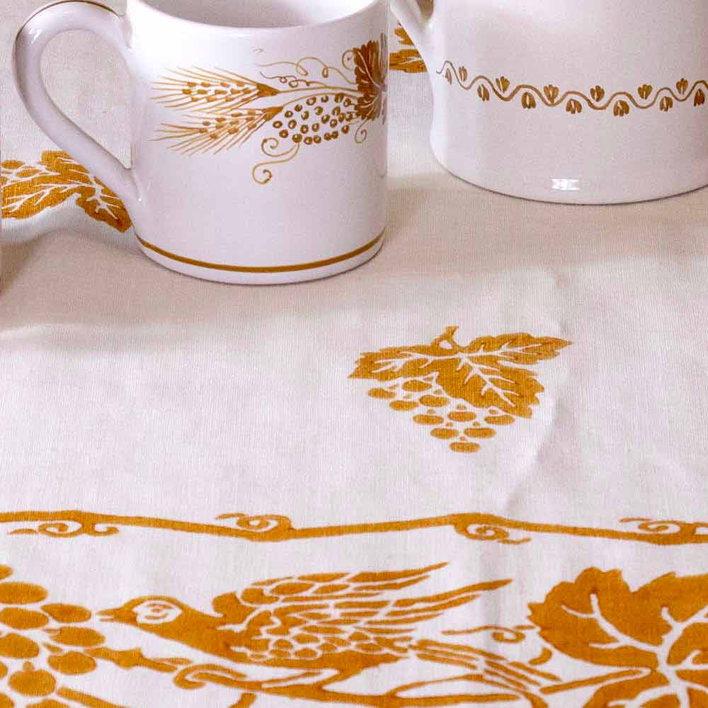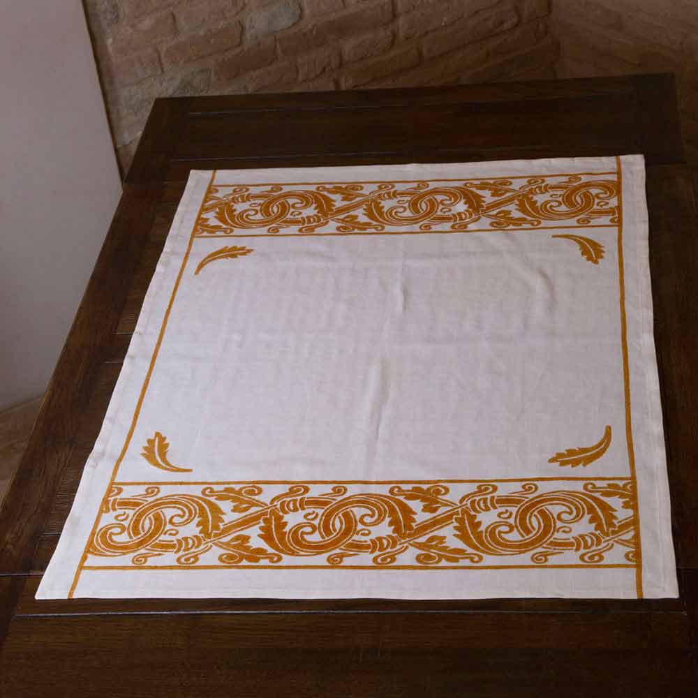 Ambachtelijk ontbijtservies (placemat en 2 servetten) gemaakt van puur linnen met artistieke print op handgedecoreerde antieke stoffen, verkrijgbaar in drie varianten, een uniek stuk kwaliteit made in Italy.