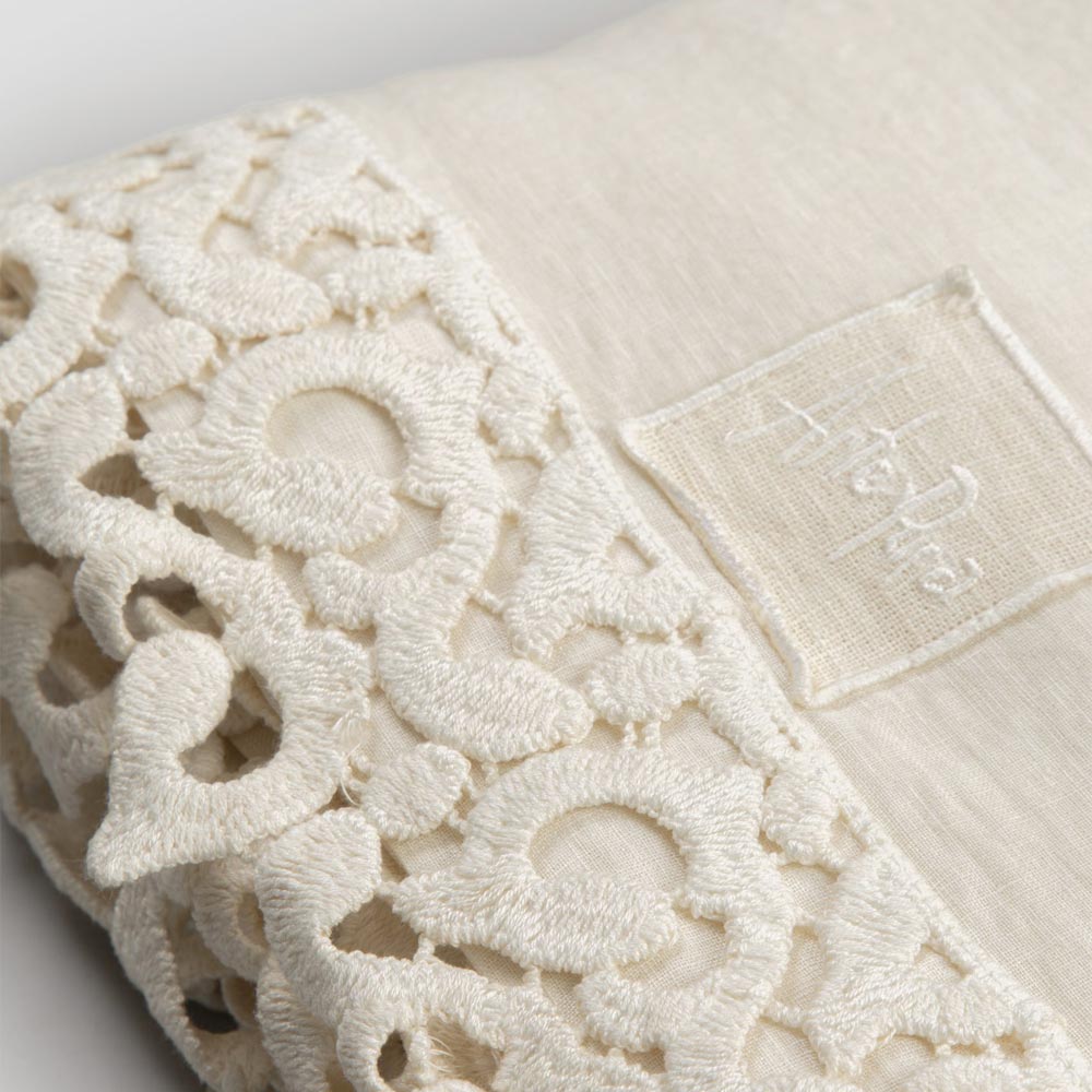kant genaaid Poema-kant en gevouwen rand , wordt het geproduceerd in Italië en gemaakt van 100%