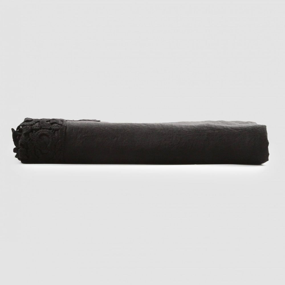 lichte linnen laken dat verkrijgbaar is in verschillende kleuren voor het tweepersoonsbed. Versierd met aan één