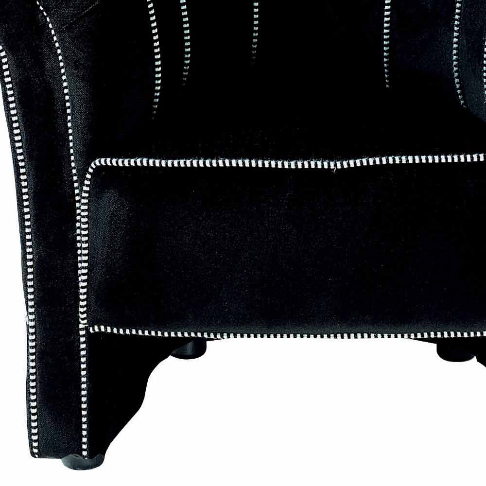 Woonkamerfauteuil met interne houten structuur bedekt met polyurethaanschuim en polyestervezel voering, externe bekleding in zwart fluweel met zwart-witte garnituren ( niet verwijderbaar ). Gemaakt door een 100% Made in Italy-productie , heeft deze fauteuil een bijzonder eenvoudige en veelzijdige vorm die zich gemakkelijk aanpast aan elke moderne woonruimte dankzij een sober ontwerp en essentiële vormen . Om de esthetiek te verrijken zijn de contrasterende naden die de fundamentele kenmerken van de fauteuil onderstrepen, wat een gevoel van verfijning en innovatie geeft voor een hypermodern resultaat. Ideaal voor wie houdt van een elegante inrichtingsstijl, deze inrichtingsoplossing heeft ook een fluwelen bekleding, een materiaal dat het comfort maximaliseert, zelfs bij aanraking. De materialen die voor de realisatie van deze aanvulling zijn gekozen en gebruikt, maken het ook mogelijk om een bijzonder uitnodigende zitplaats te verkrijgen, dus ideaal om heerlijke momenten door te brengen die gewijd zijn aan ontspanning in uw woonkamer.