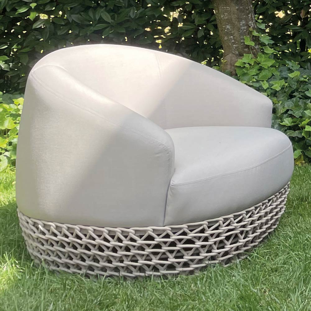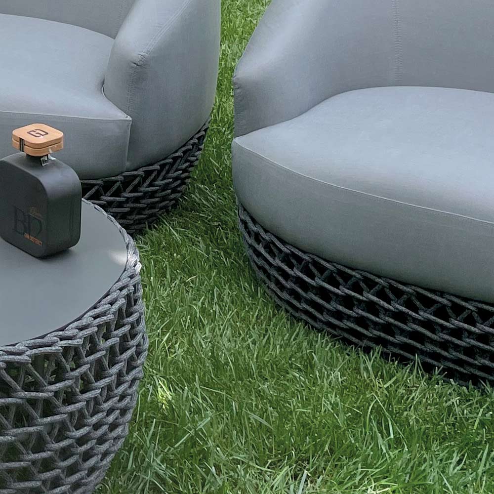 De kussens zijn gemaakt van waterbestendig rubber voor buitengebruik en garanderen maximaal comfort en een perfecte weerstand tegen weersinvloeden. De aluminium structuur die in de zitting verborgen zit, zorgt voor stevigheid en duurzaamheid .