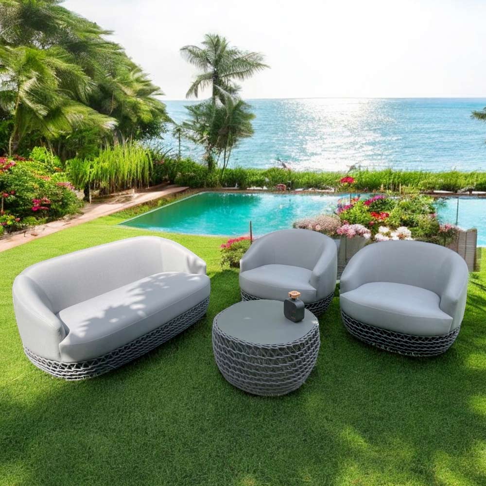 Deze loungeset wordt geleverd met een bijpassende salontafel met hetzelfde decoratieve vlechtwerk en is de ideale keuze voor het creëren van een elegante oase van ontspanning , perfect voor tuinen, terrassen en veranda's.