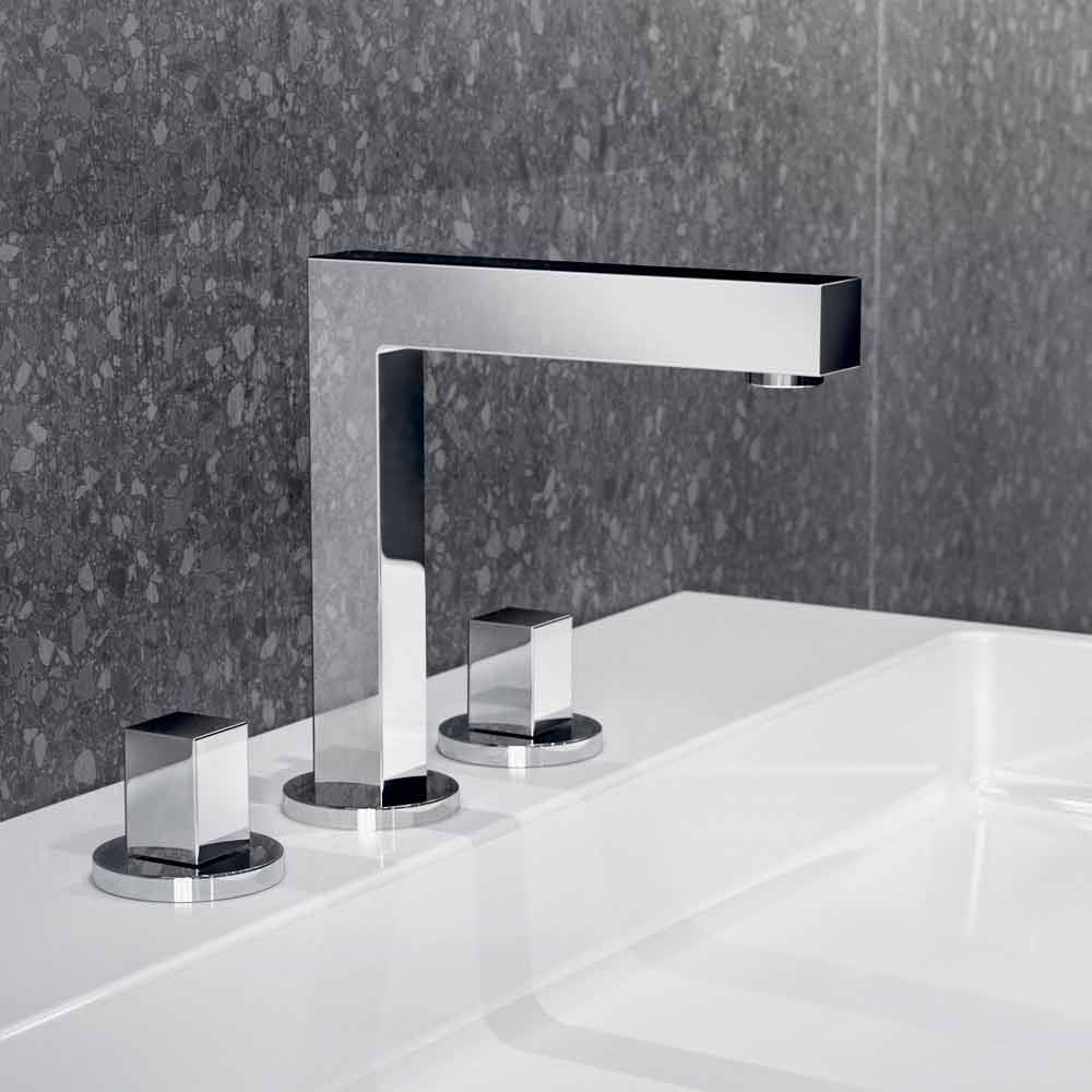 Modern 3-hole badkamer wastafel kraan gemaakt van messing met chromen afwerking.