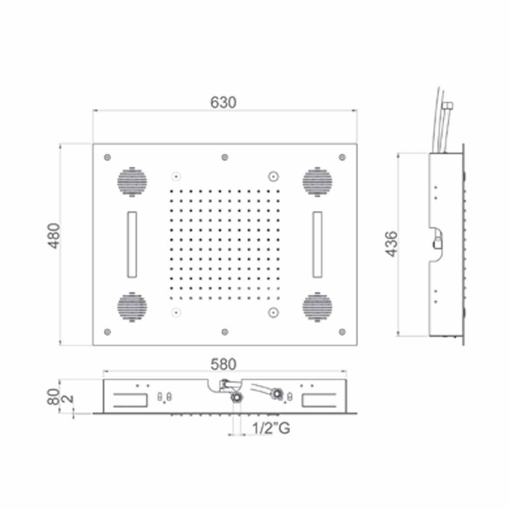 Kenmerken:- Rechthoekige douchekop van anti-kalksteen roestvrij staal