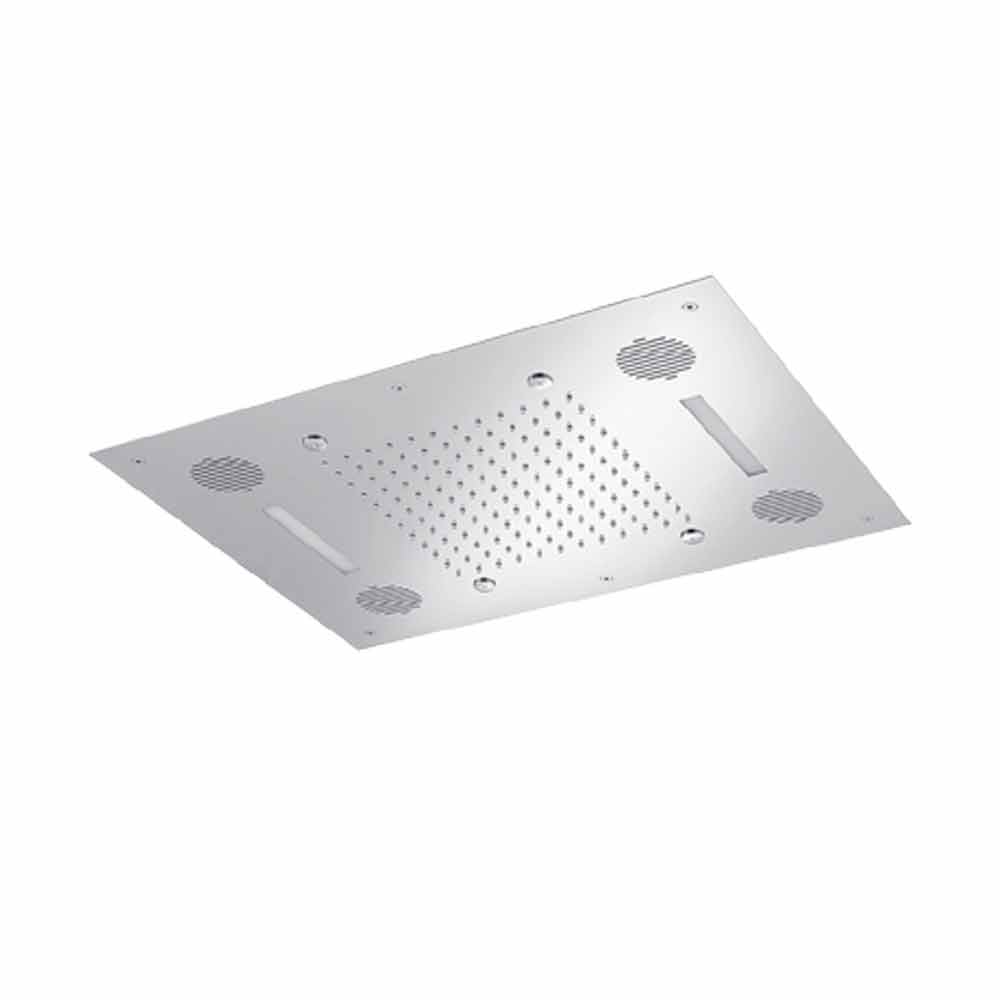 Roestvrijstalen douchekop met chromotherapie en radiotoegang, luxe product Made in Italy.
