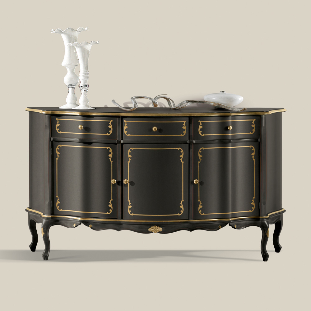 Luxe dressoir met 3 deuren en 3 lades in Made in Italy hout.