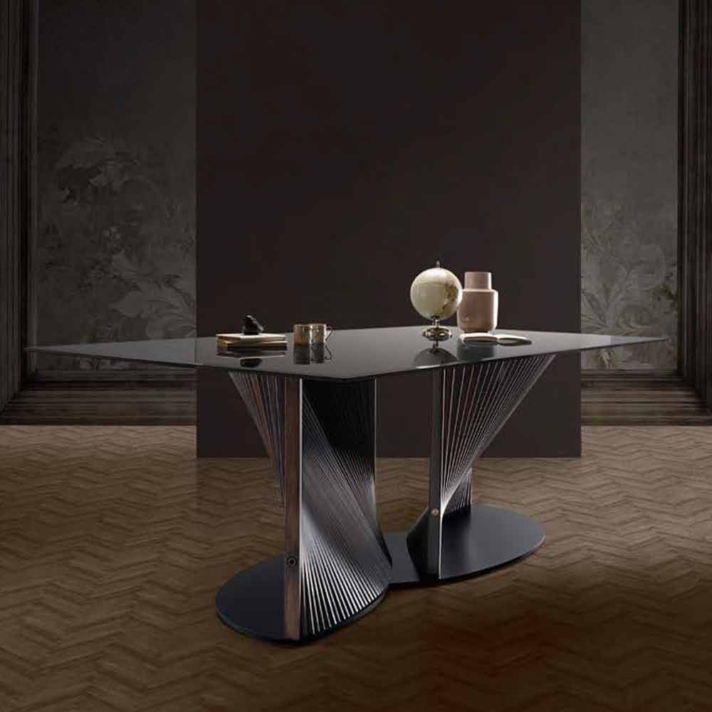 Elegante design eettafel gemaakt van rookglas en hout, hoge kwaliteit Made in Italy.