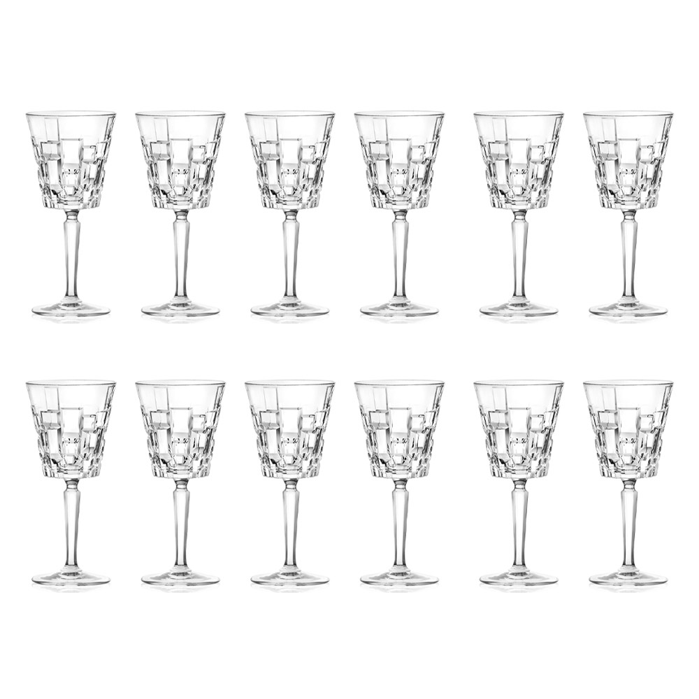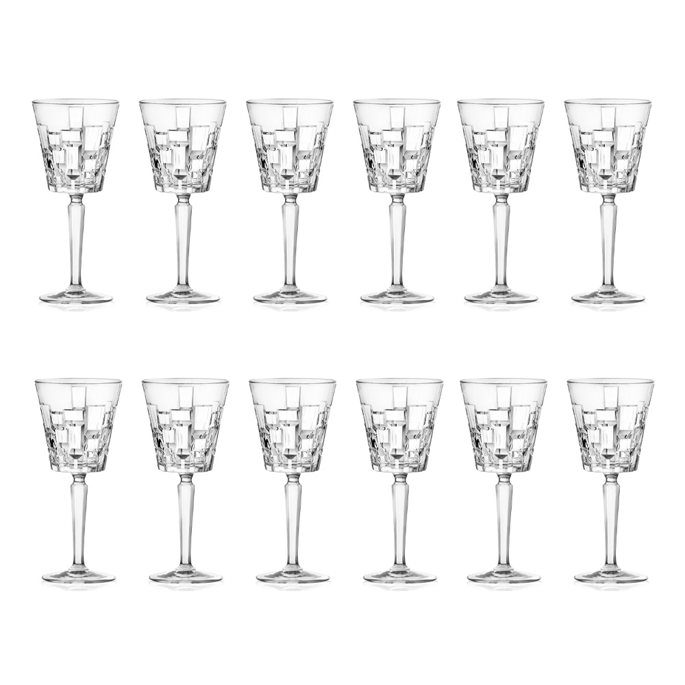 Eco-kristallen wijn- of waterbekerset met 12-delige snijwerkdecoratie gemaakt in Italië.