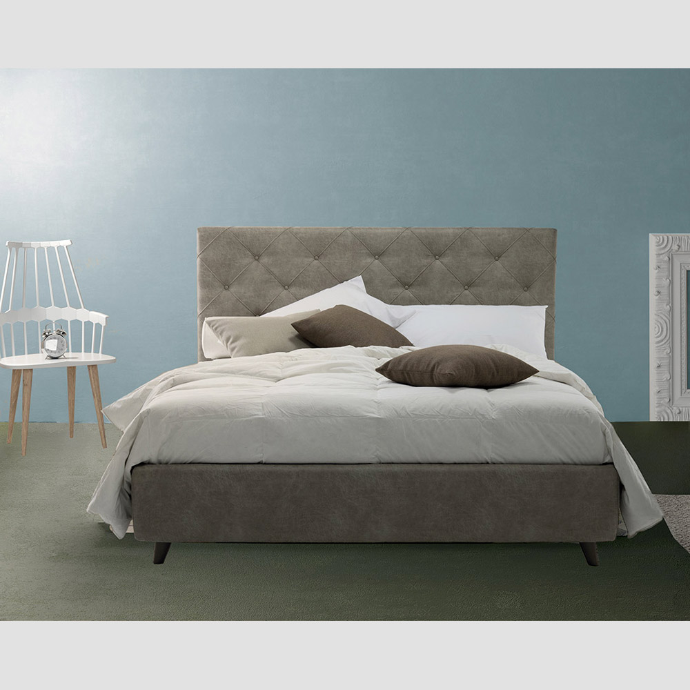 Tweepersoonsbed met opbergdoos in hoogwaardige stof of eco-leer, handgemaakt in Italië.