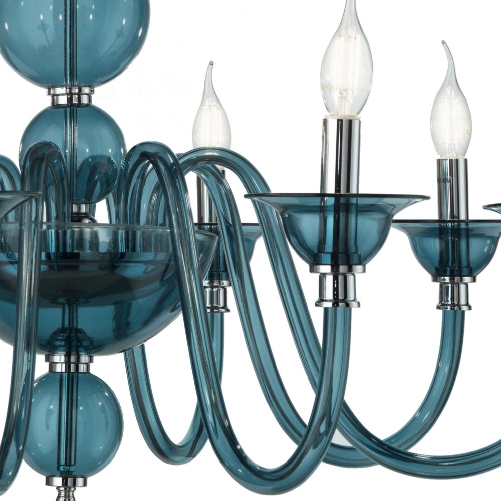 Klassieke kroonluchter met 8 lampen in chroommetaal en handgemaakt glas, luxe gemaakt in Italië.