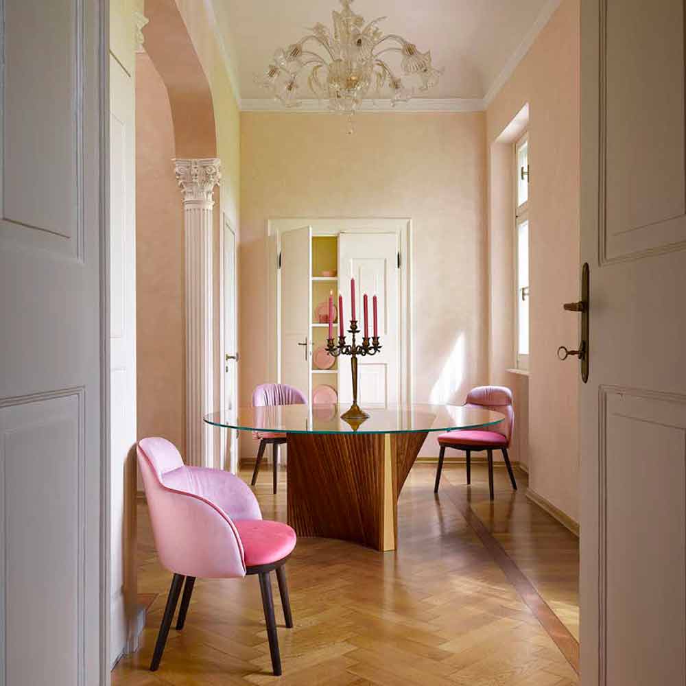 design te combineren. Dankzij zijn sterke persoonlijkheid en de prachtige combinatie van de elegantie van glas en de majesteit van hout, is dit product in staat eetkamers en keukens in te richten met een eigentijdse smaak op zoek naar een uniek object, een echt