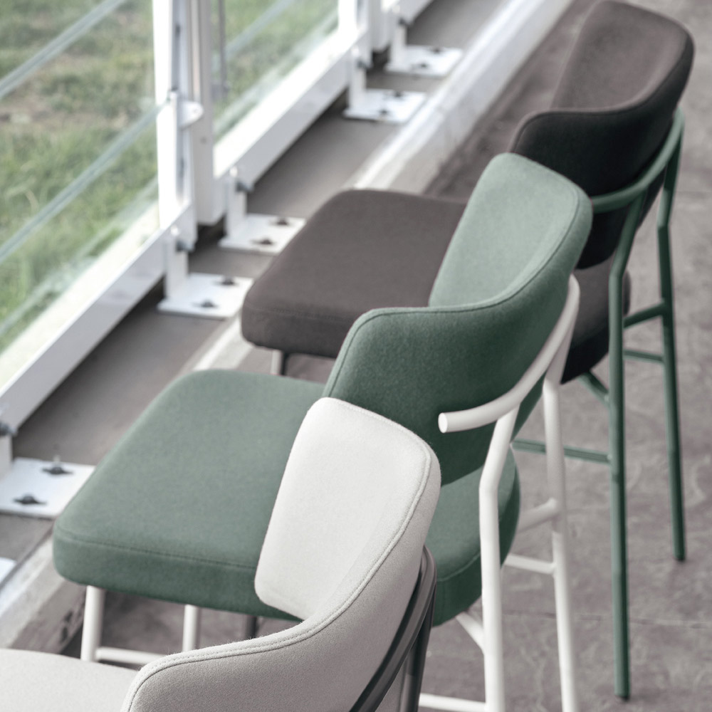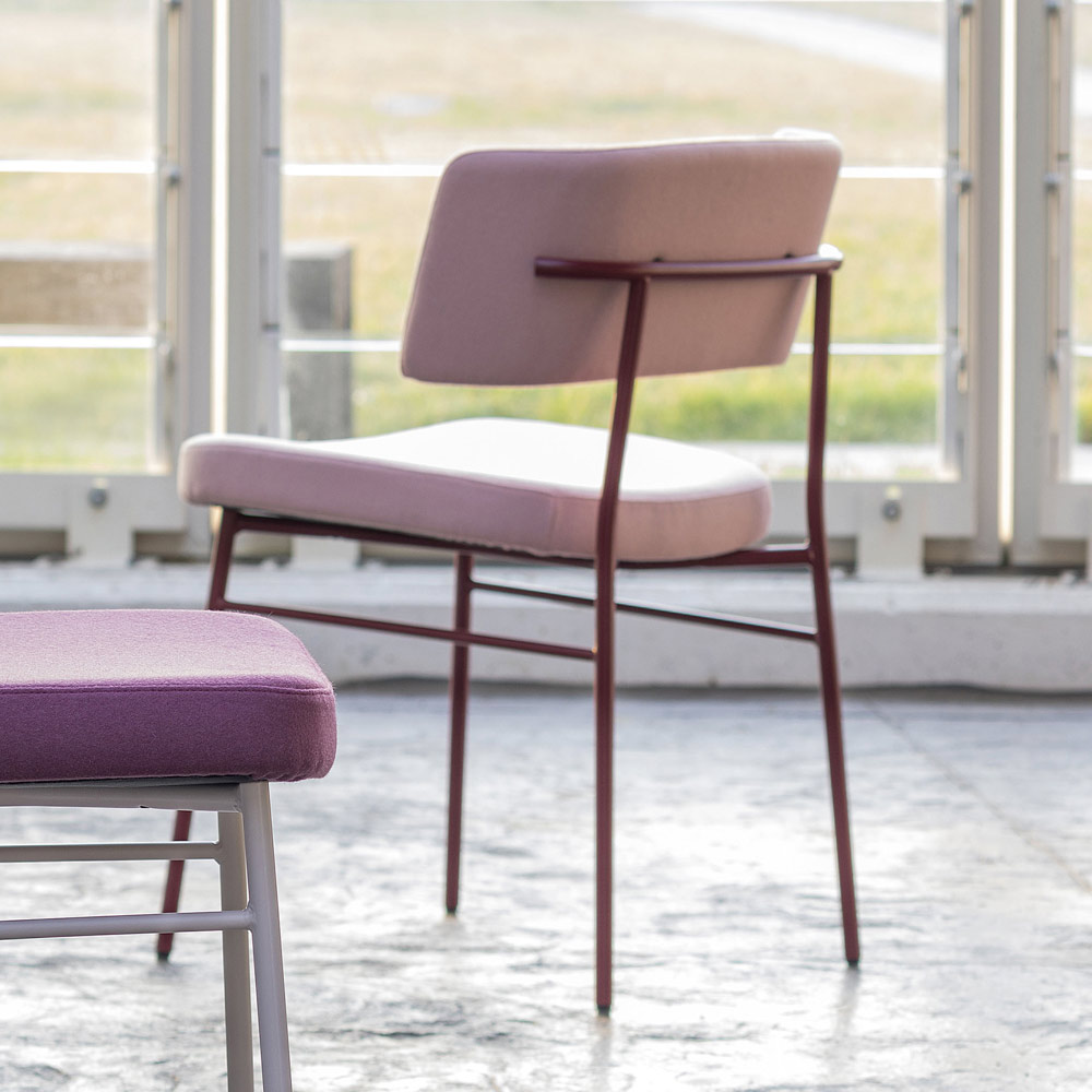 Hoge kwaliteit stoel in geverfd metaal en stof Made in Italy, 2 stuks.