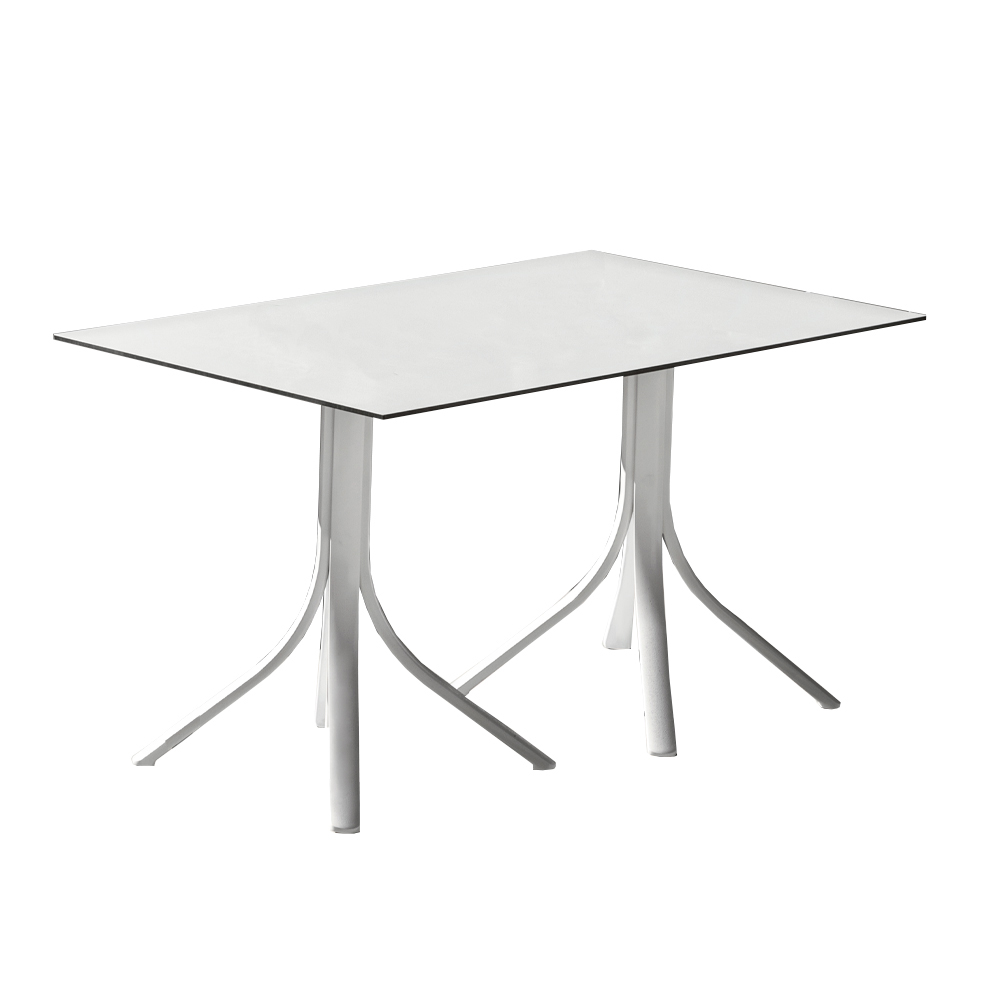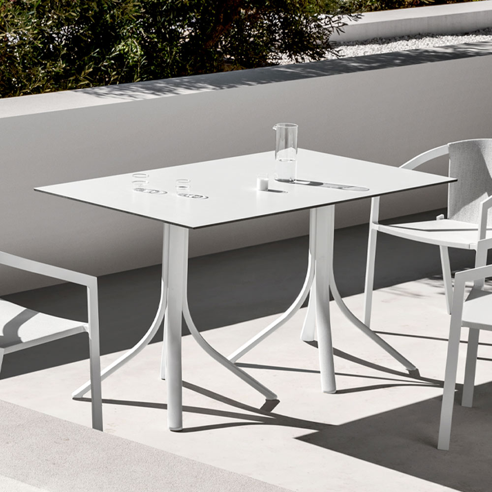 Buitentafel met rechthoekig design in aluminium en HPL blad in 2 afwerkingen, artikel van hoge kwaliteit gemaakt in Italië.