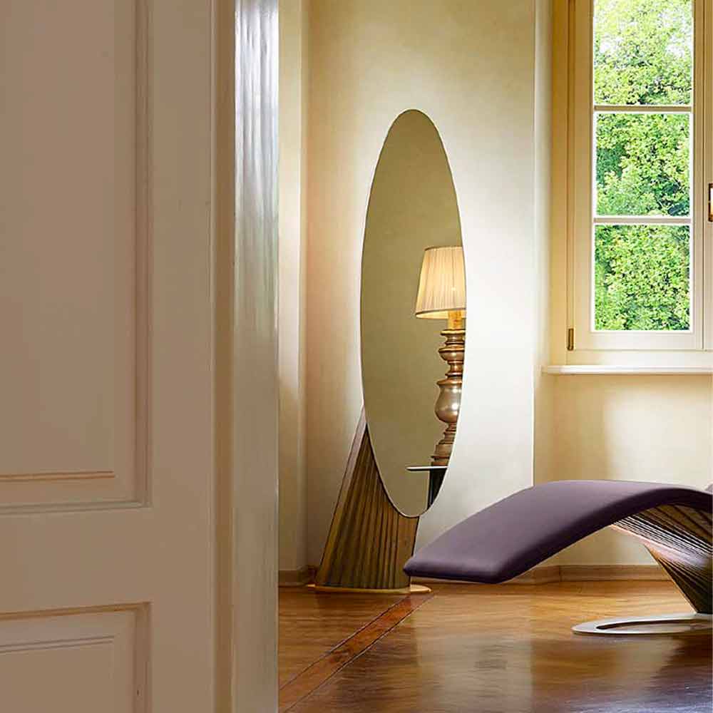 Vloerspiegel met structuur in essenhout, hoge kwaliteit Made in Italy.