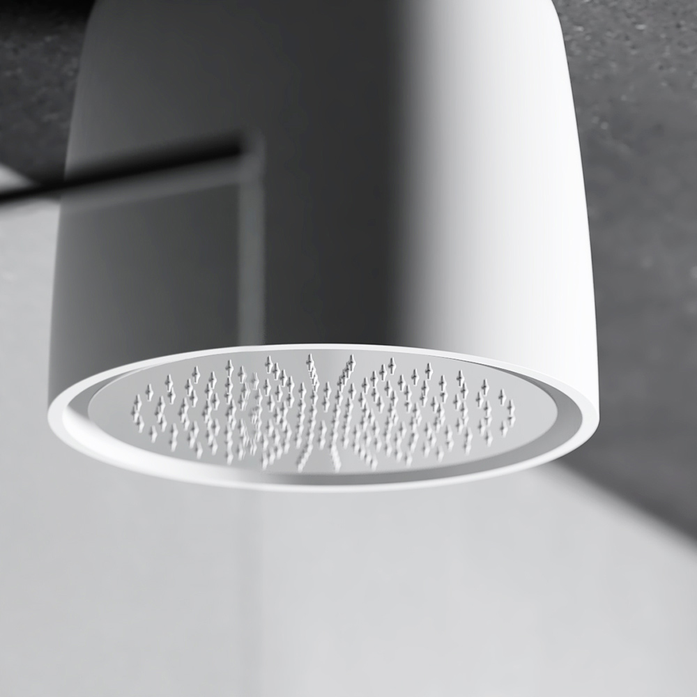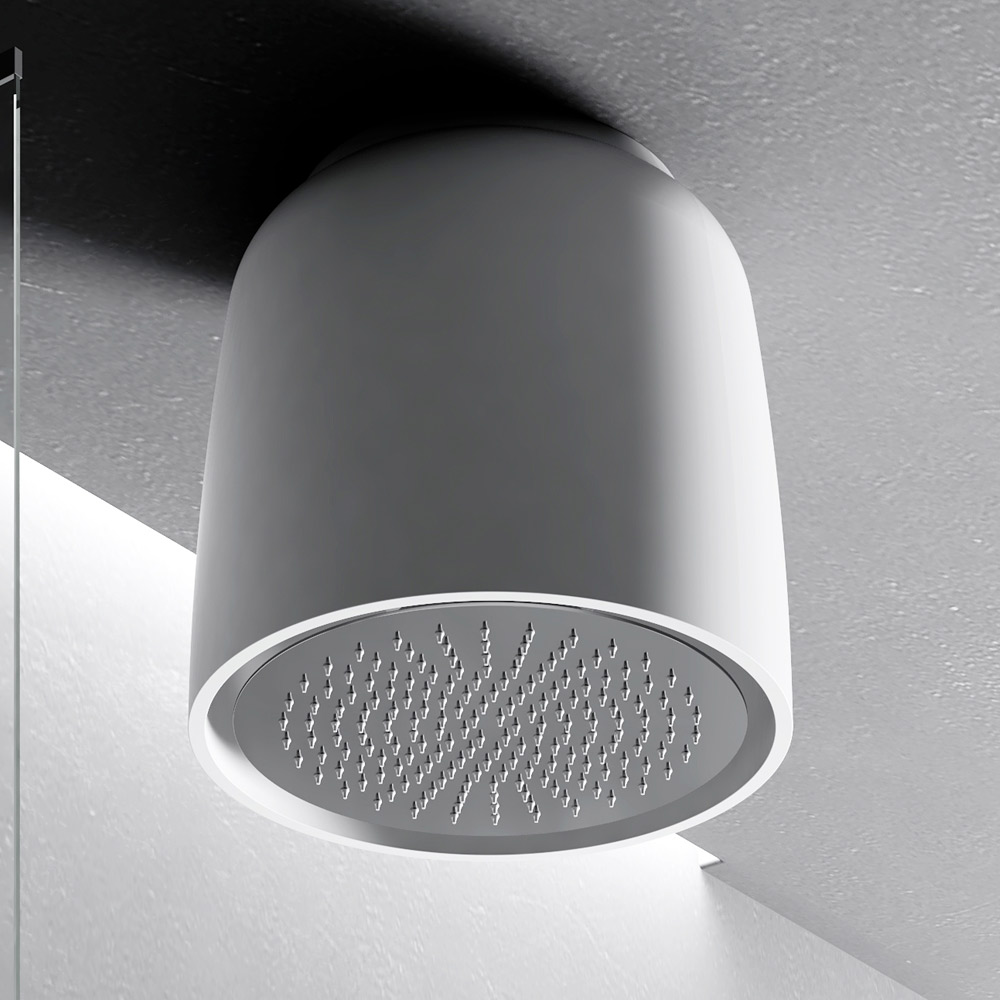 Made in Italy. Deze douchekop met minimalistisch design is een meesterwerk van functionaliteit en moderne stijl . De matwitte afwerking en cilindrische vorm maken hem tot een stijlvol middelpunt in elke moderne badkamer, terwijl de royale sproeiopening zorgt voor een aangename en ontspannende douche-ervaring, vergelijkbaar met natuurlijke regenval. De plafondinstallatie biedt een strak en geïntegreerd uiterlijk, waardoor ruimte wordt vrijgemaakt en visuele rommel wordt verminderd. Elk aspect van deze douchekop is ontworpen met het oog op welzijn en comfort , waardoor het dagelijkse baden een ervaring van luxe en ontspanning wordt. Het is de perfecte aanvulling voor iedereen die zijn persoonlijke verzorgingsroutine wil verheffen tot een moment van puur zintuiglijk genot .