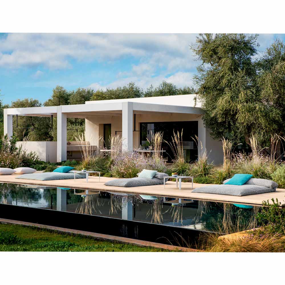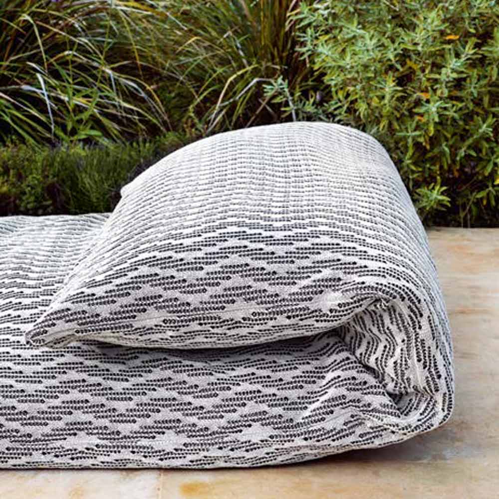 poefbed voor buiten biedt extreem comfort dankzij de vouwlijn die op driekwart van het oppervlak aanwezig is, zodat het gebied voor de rest van de schouders en het hoofd goed gedefinieerd en zelfs comfortabeler is.