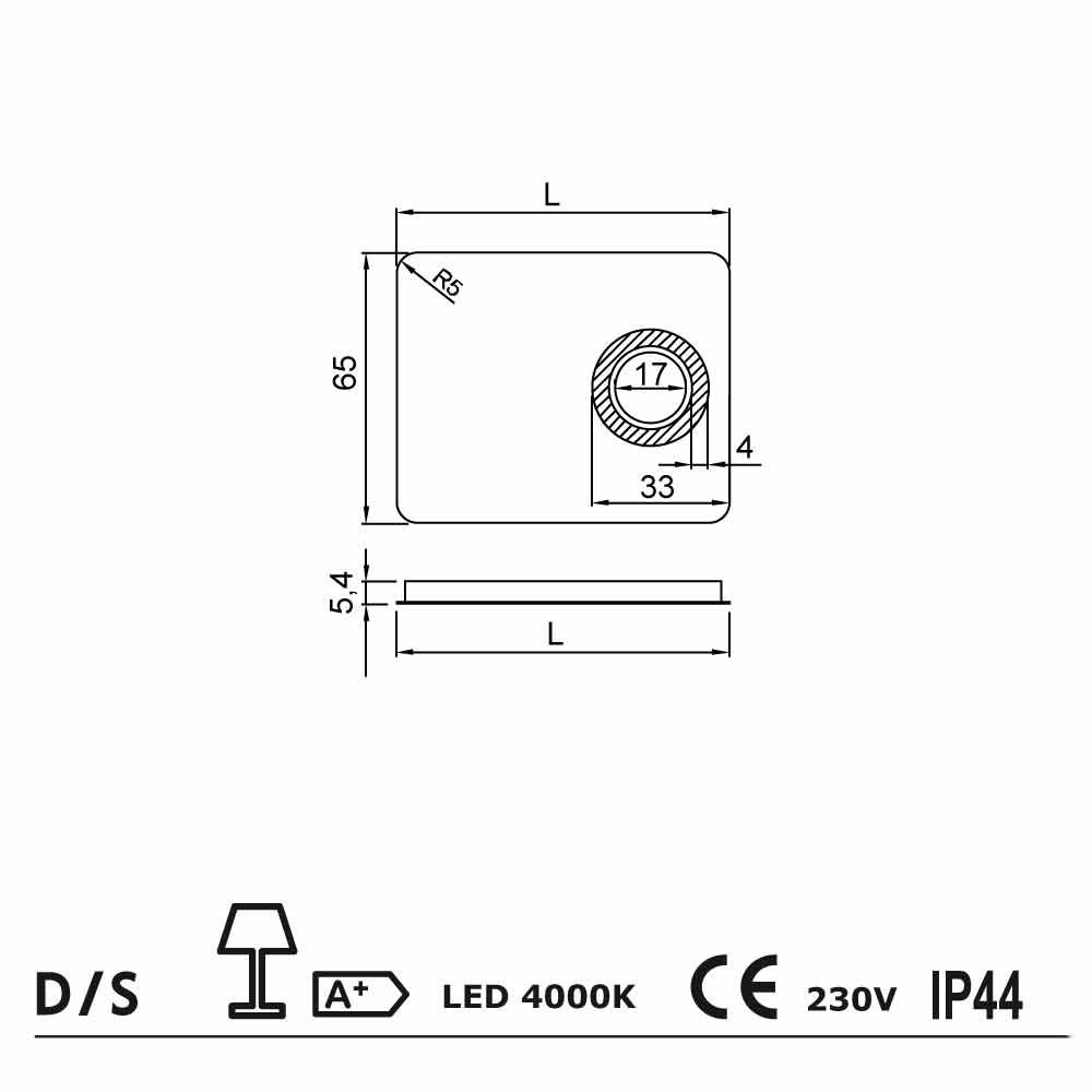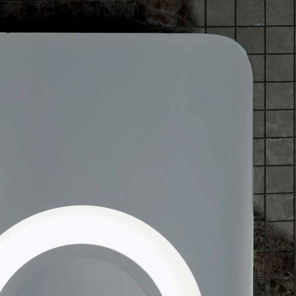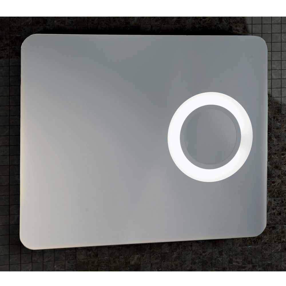 Mirror van de afgeronde hoeken met geïntegreerde make-up spiegel, compleet met LED-verlichting. Vergrootglas 170 mm diameter.