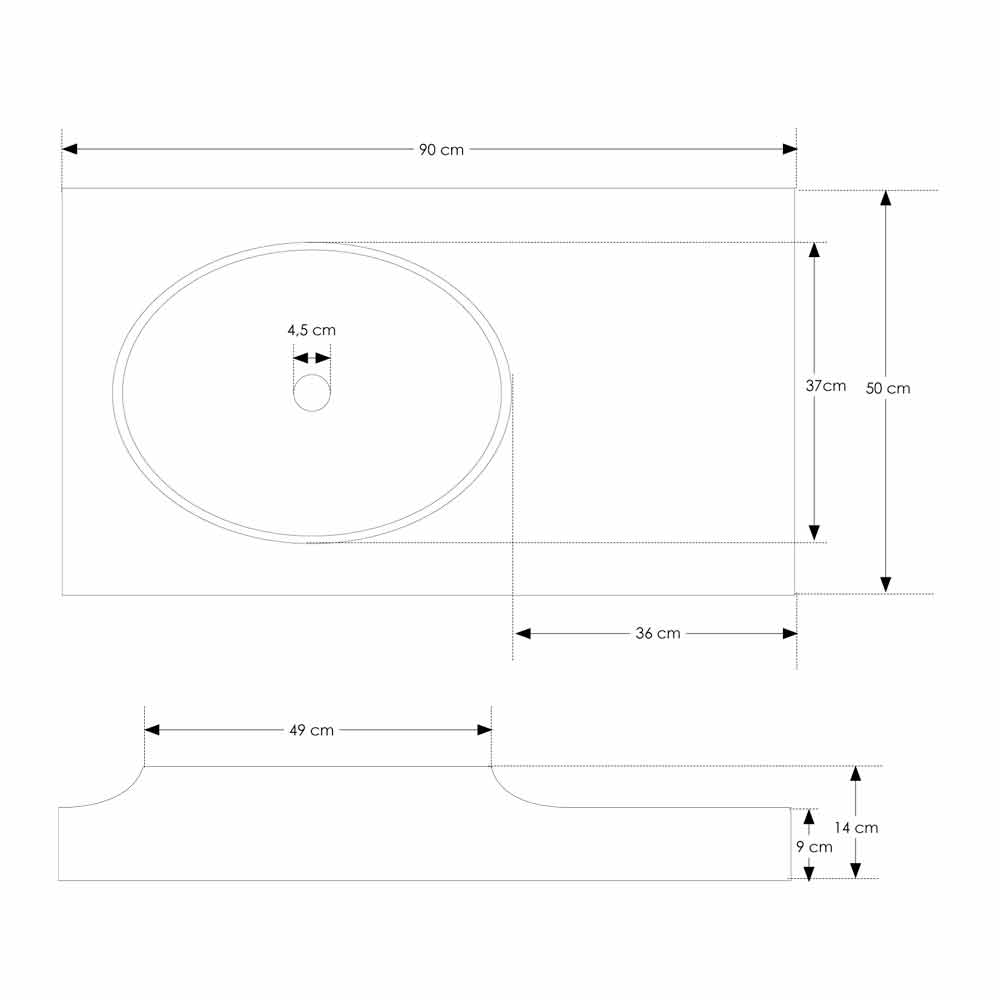 Gemaakt van wit Istone Solid Surface met geïntegreerde spoelbak, overloopgat en afvoerafdekking in hetzelfde materiaal inbegrepen.