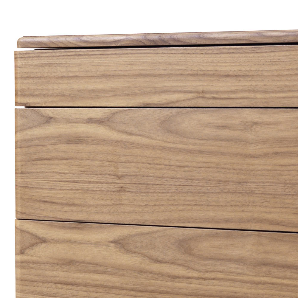 Basis en bovenkant van canaletto-walnoot, inserts aan de voorkant in natuurlijk leer.