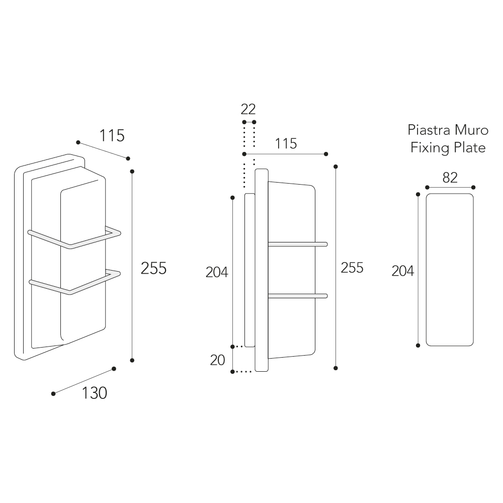 • Wandplaat: 20,4 × 8,2 cm