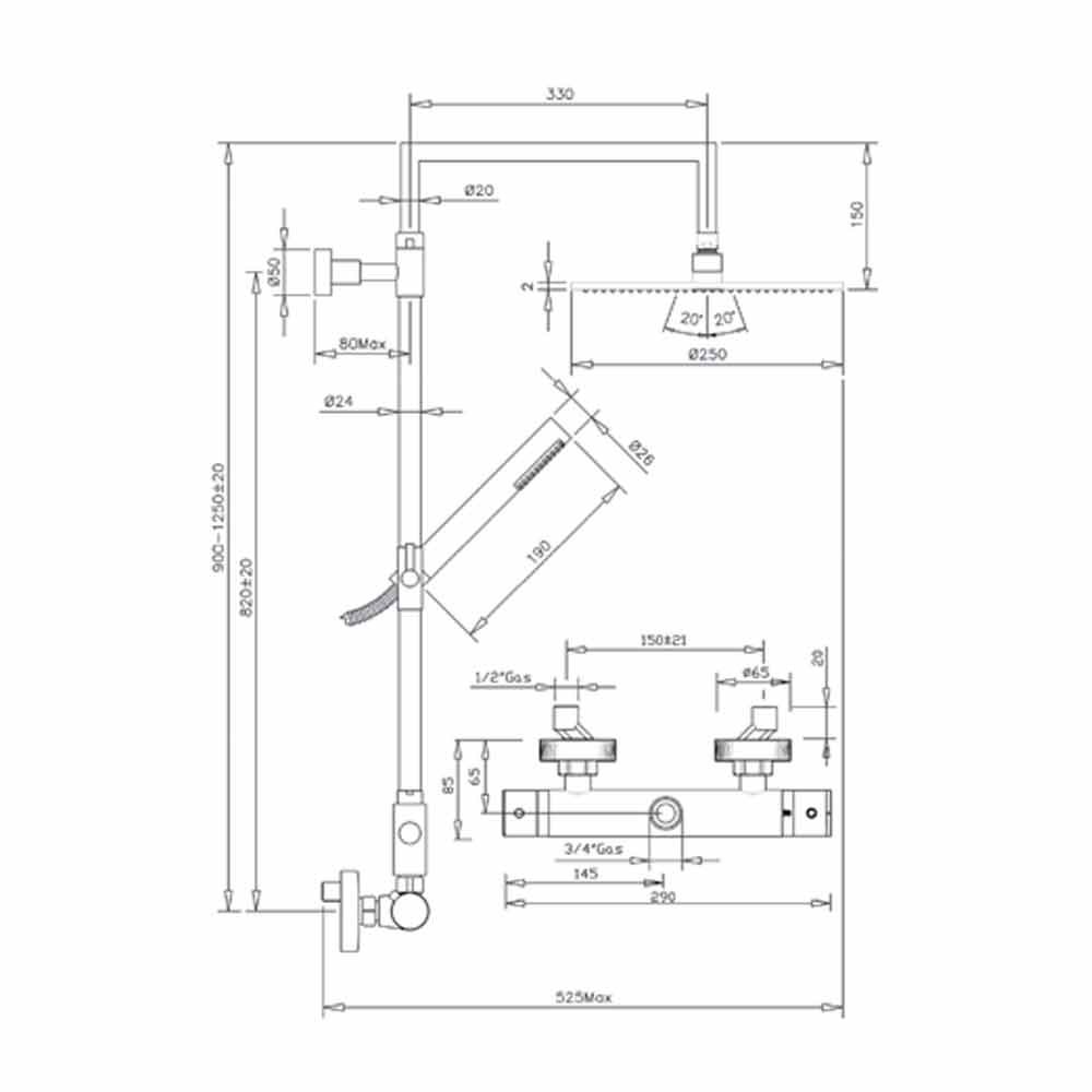 Moderne douchekolom in verchroomd messing, staal en ABS Made in Italy.