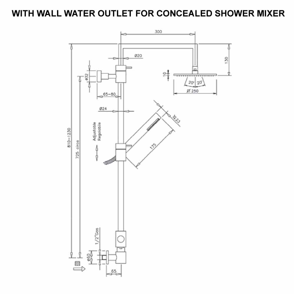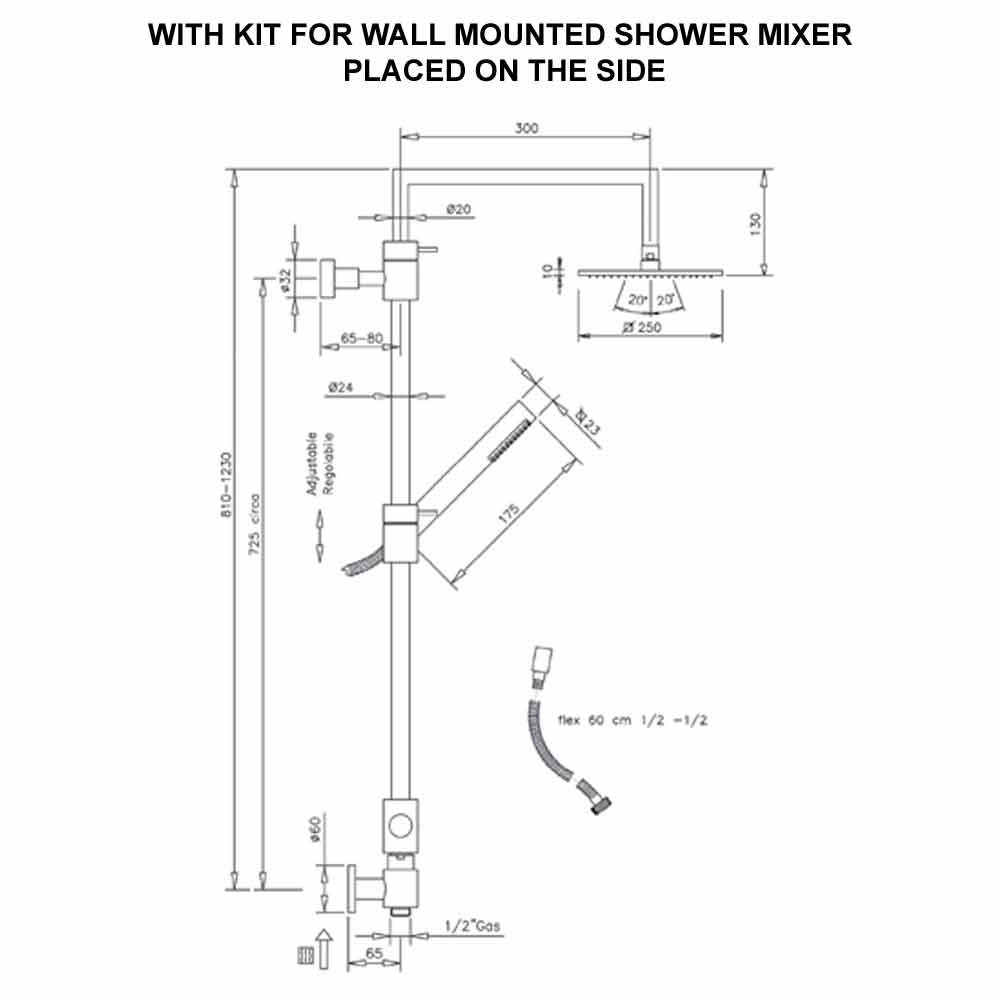 Messing douchezuil met douchekop en omstelling, fijn Made in Italy item.