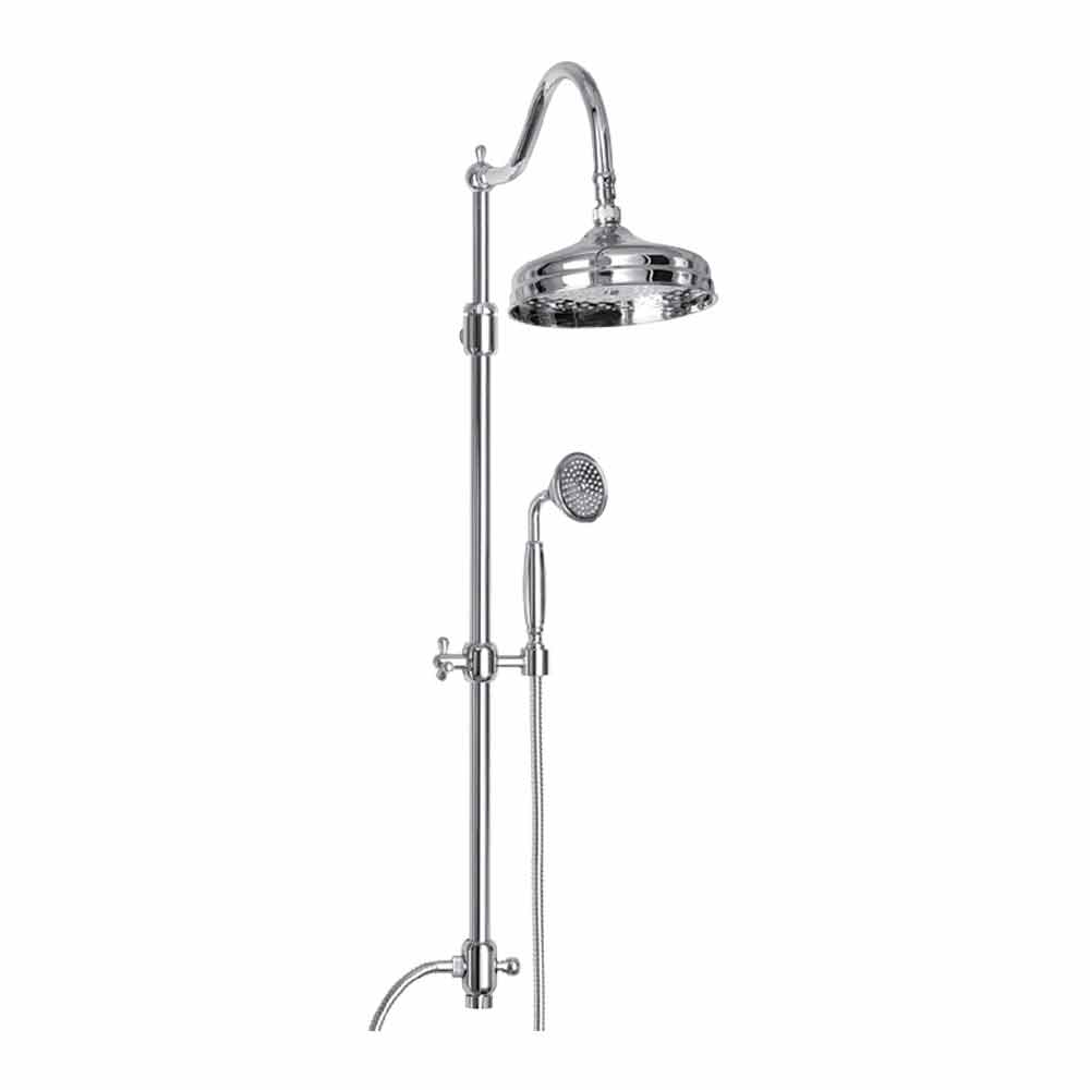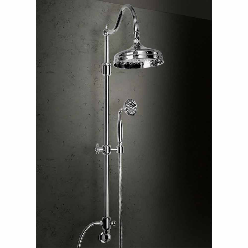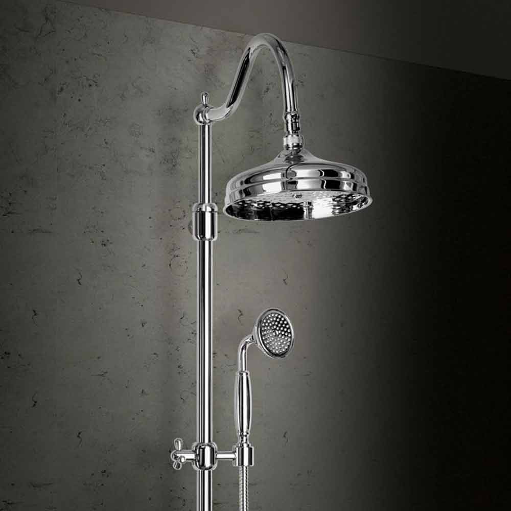 Klassiek design douchezuil in messing met douchekop en handdouche, fijn Made in Italy item.