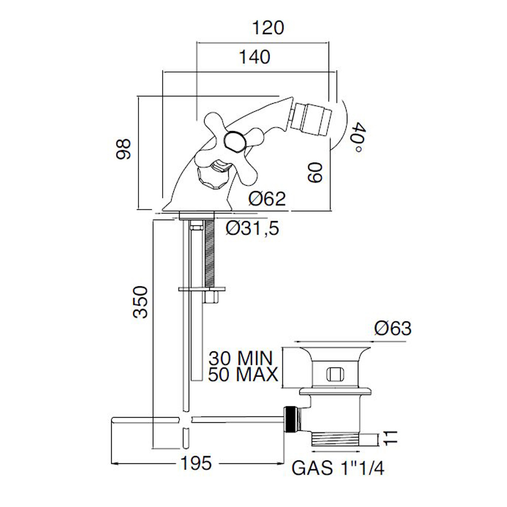 eengats bidetkraan voor eengats bidet met afvoer è volledig