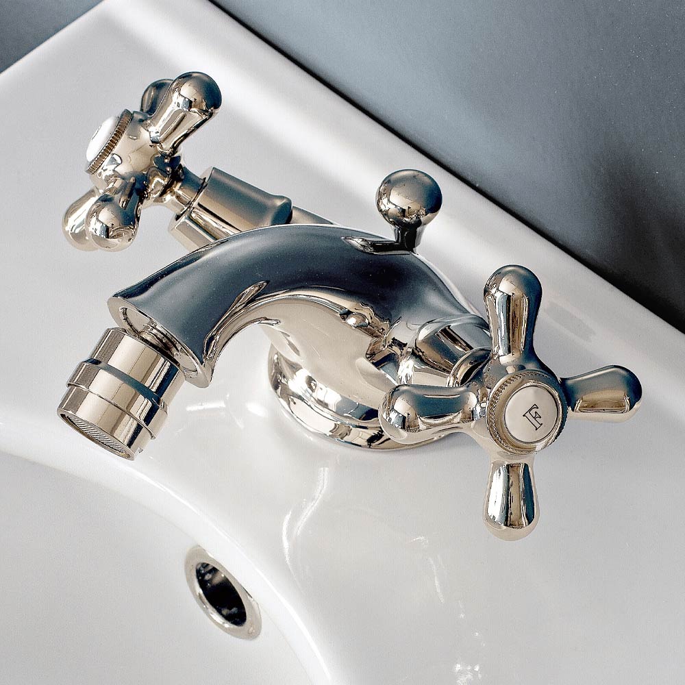 Eéngats bidetkraan met handgemaakte messing spoeling gemaakt in Italië.