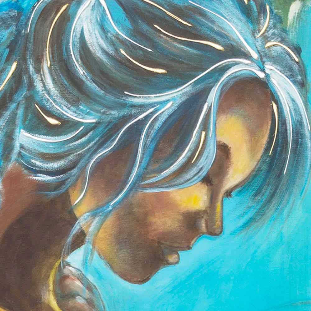 Kader met grote eigenaardigheden. Dit werk werd in feite gemaakt met behulp van de techniek van gieten, waarop deskundige vakmensen vakkundig de zilveren krullen van het meisje hebben geïntroduceerd, waardoor het originaliteit en exclusiviteit heeft voor elk individueel element, elk altijd verschillend van het andere.