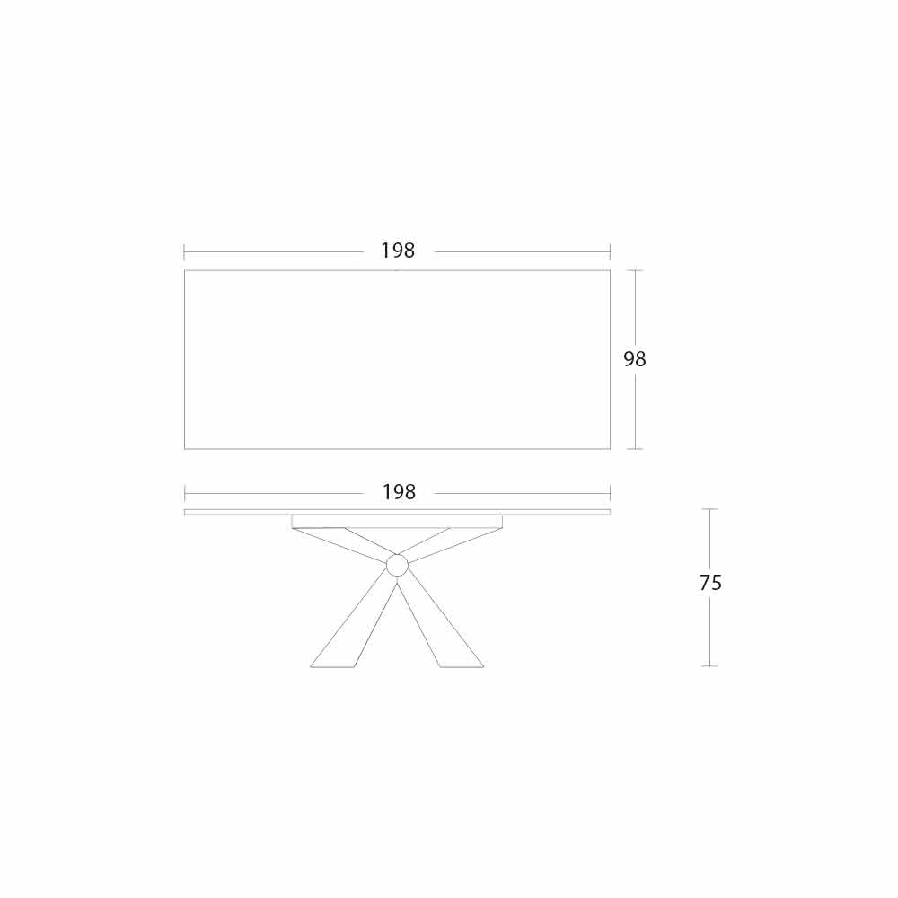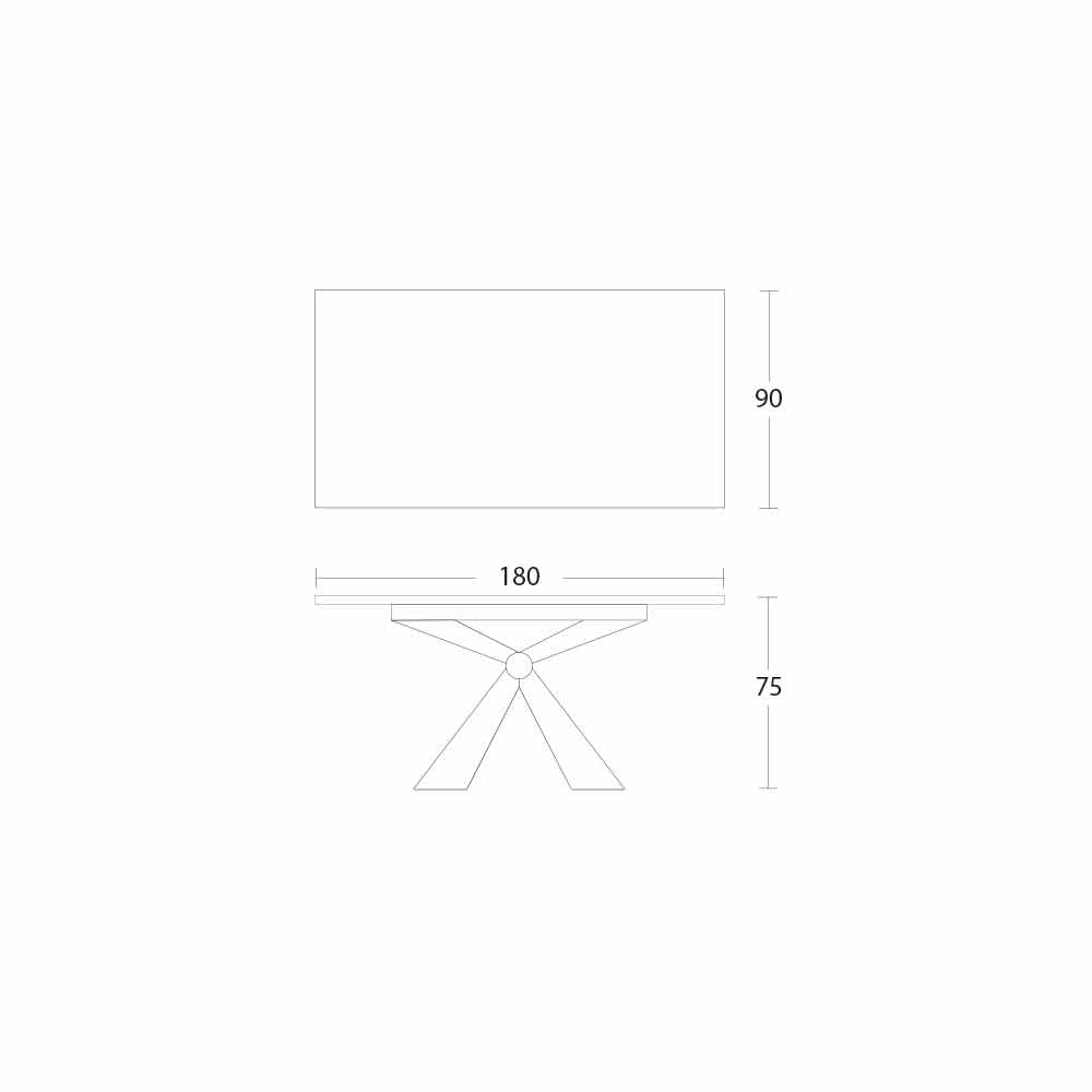 Eettafel in laminam keramiek en onderstel met metalen knoop gemaakt in Italië.