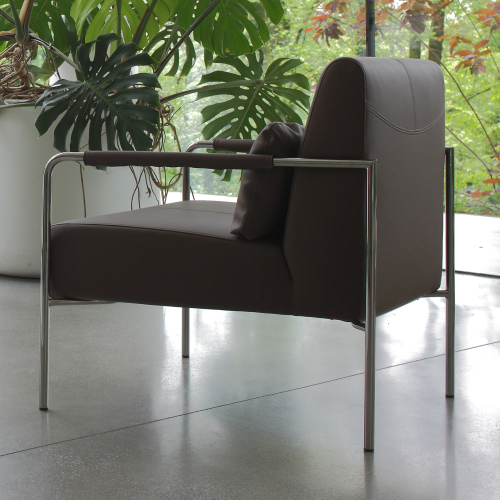 verchroomde metalen poten en armleuningen, zitting bekleed met