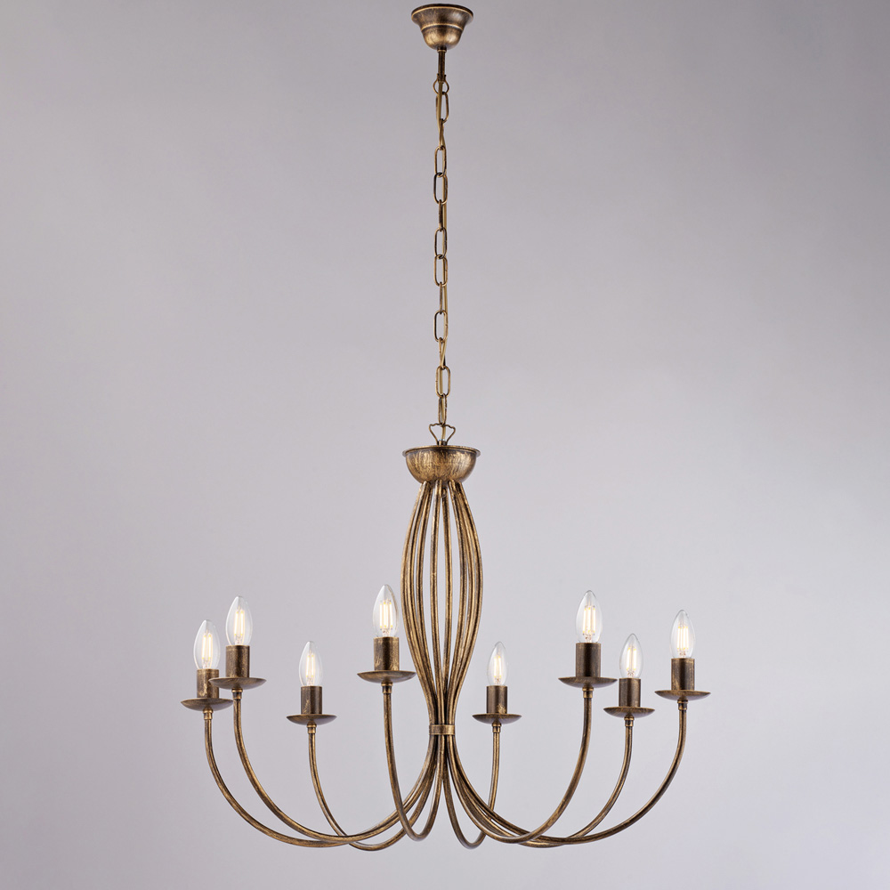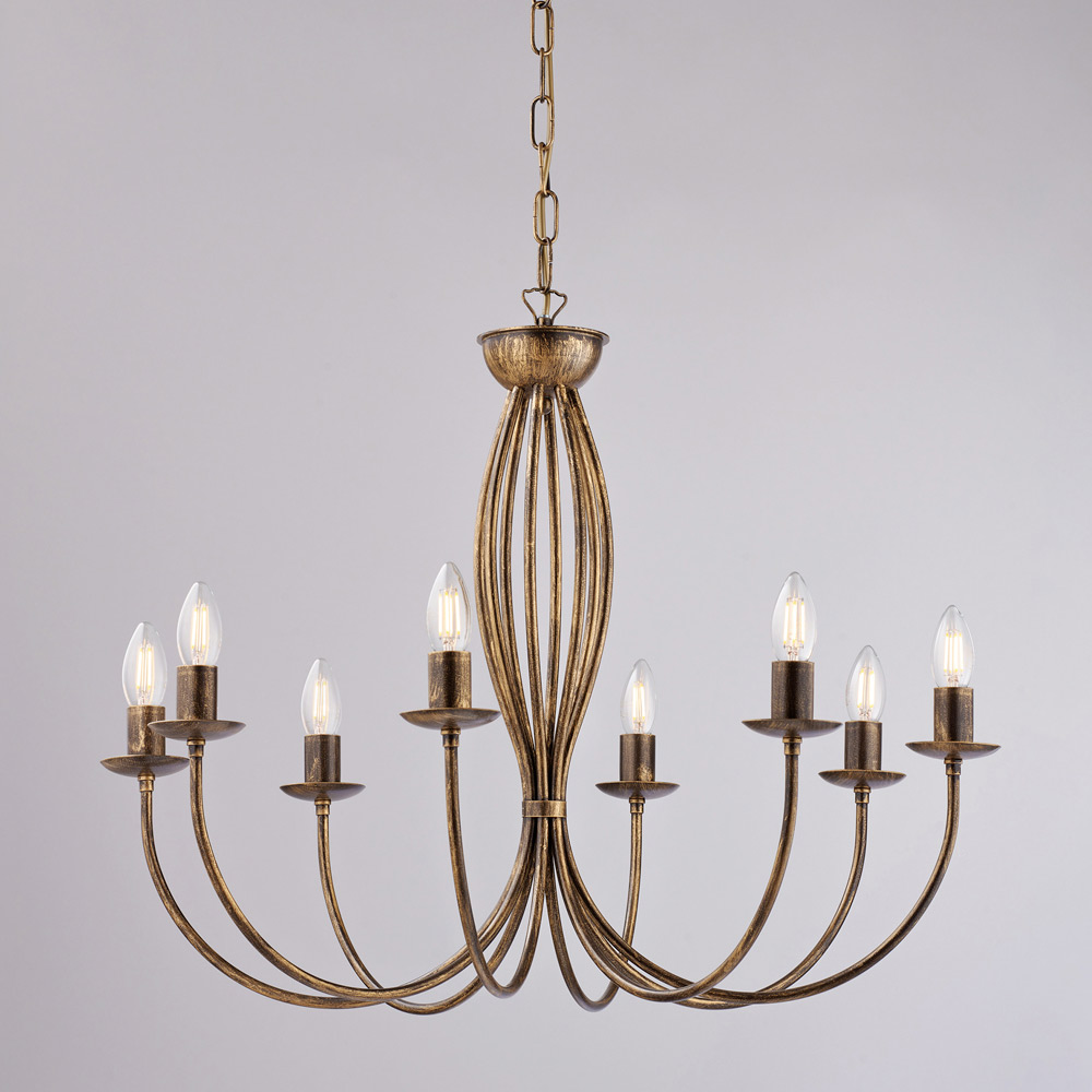 Deze metalen kroonluchter is een ideale oplossing voor wie op zoek is naar decoratieve verlichting in combinatie met een evenwichtige en veelzijdige stijl.