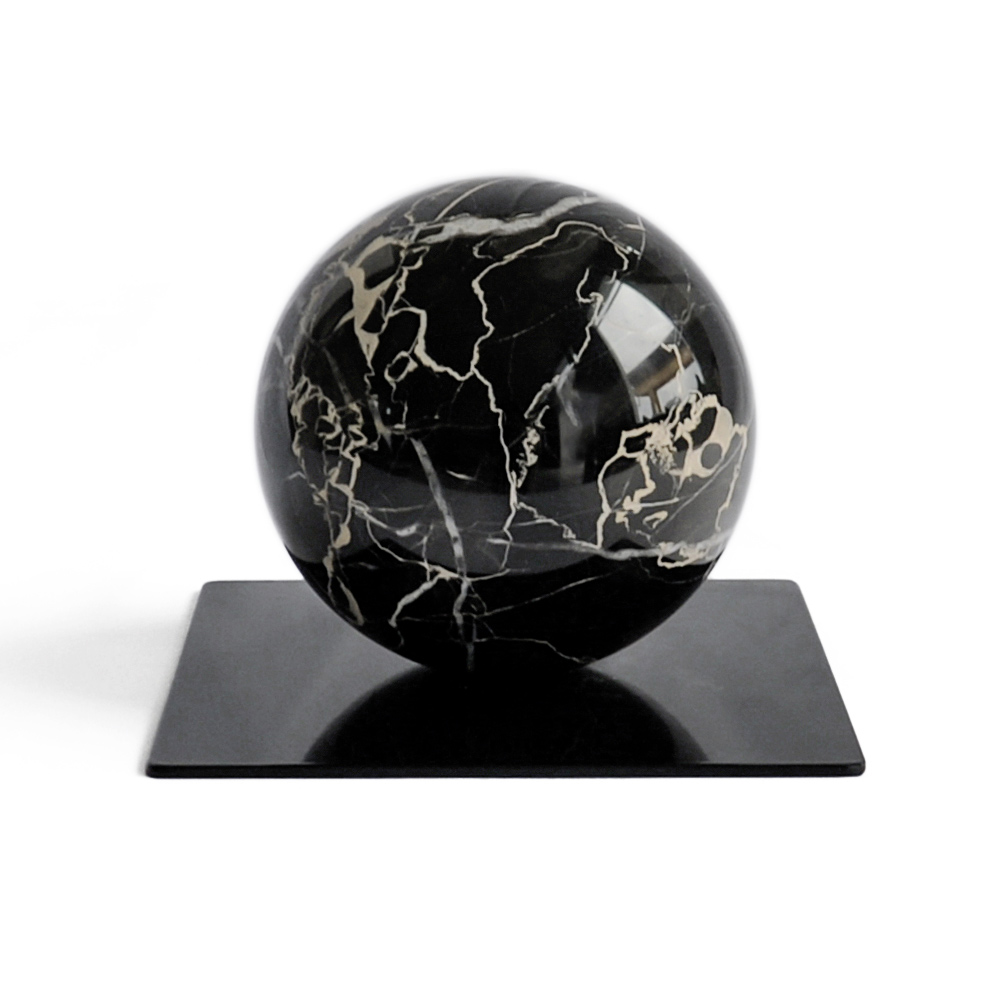 Deze marmeren boekensteun is de perfecte synthese tussen functionaliteit en moderne sculptuur . Het ontwerp is gedurfd minimalistisch, waarbij een marmeren bol een metalen plaat ontmoet, waardoor een visueel contrast ontstaat dat een echte lust voor het oog is.