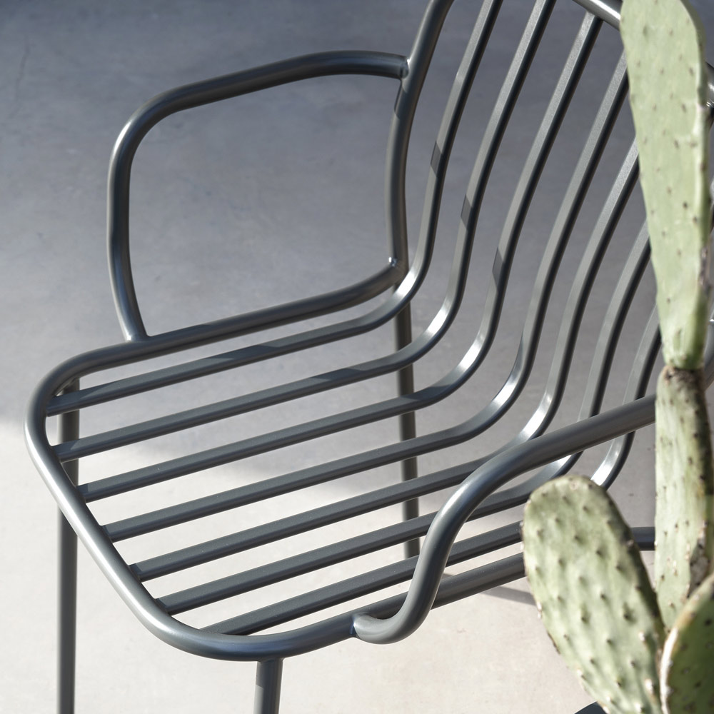 Metalen buitenstoel met armleuningen Made in Italy, 2 stuks.