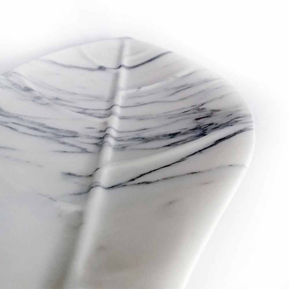 Middelpunt gekenmerkt door een verfijnd ontwerp en zijn bladvorm met kronkelige en eenvoudige lijnen maar met een sterke visuele impact. Handgemaakt in Italië van Arabescato-marmer , een materiaal dat het product zijn prachtige verfijnde en elegante stijl geeft, ideaal voor het decoreren van de meest uiteenlopende kamers van het huis. De combinatie van materialen, afwerkingen en technieken die worden gebruikt in combinatie met het prachtige werk van de ambachtslieden, zorgen ervoor dat een eindproduct van hoge kwaliteit wordt verkregen met aandacht voor detail en perfect voor het decoreren van omgevingen met een eigentijdse en verfijnde smaak.