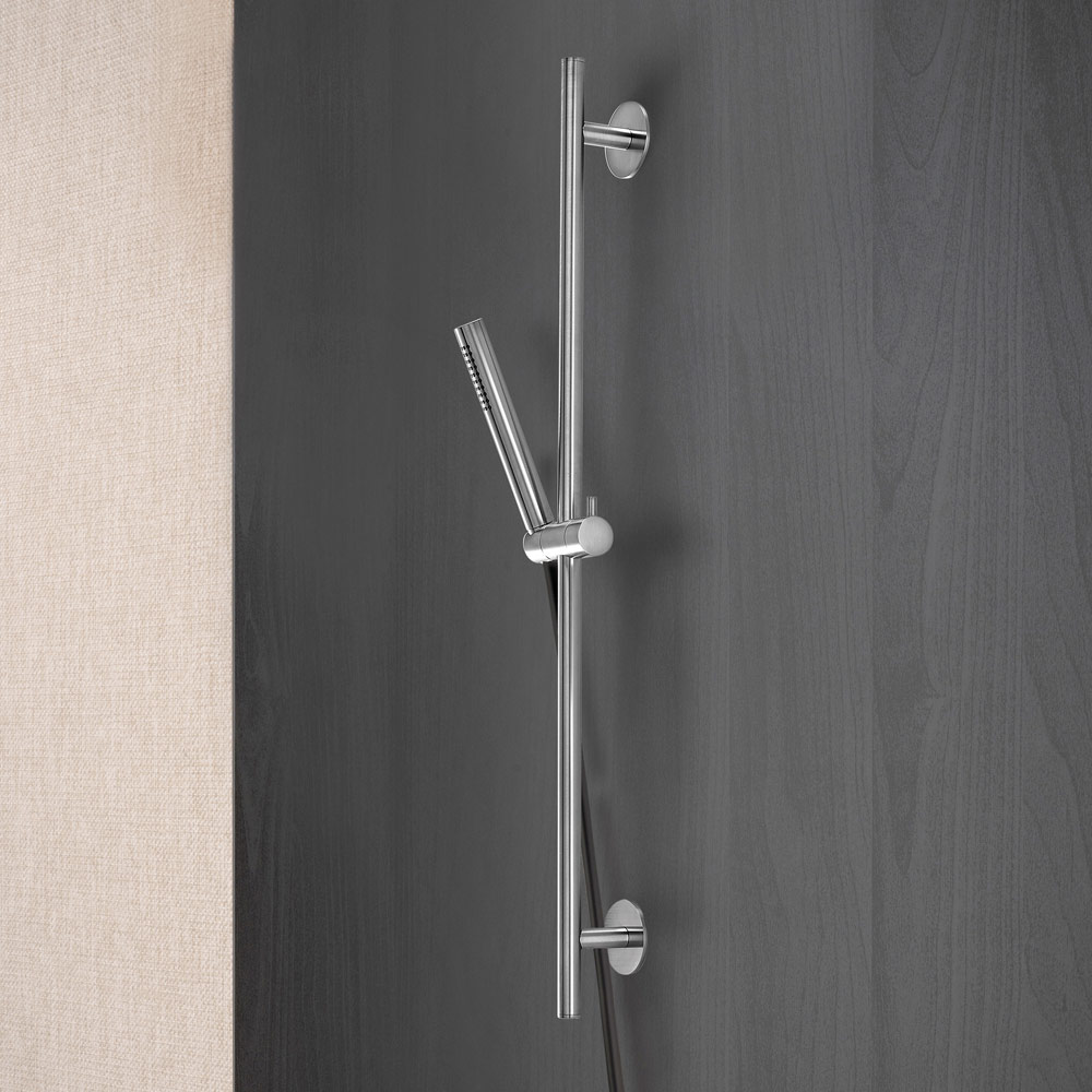 Stalen douchestang bestaande uit: ronde sectie stalen stanghelling, ronde anti-kalk stalen douchekop, darkflex anti-twist flexibele slang gemaakt van