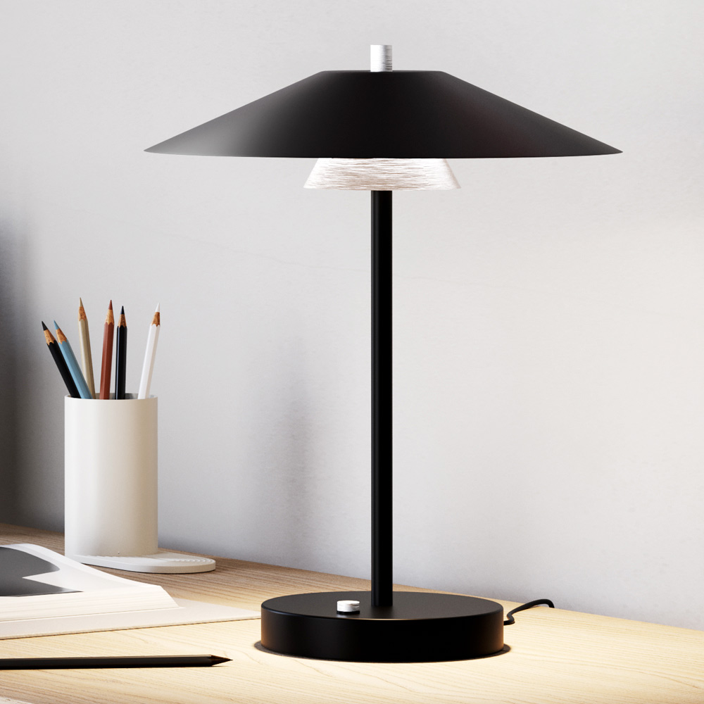 Deze aanraakgevoelige tafellamp is de perfecte mix van eigentijds design , geavanceerde functionaliteit en minimalistische elegantie . Het slanke silhouet, met een omgekeerde kegelvormige kap en een compacte voet, past naadloos in zowel huiselijke als professionele omgevingen.