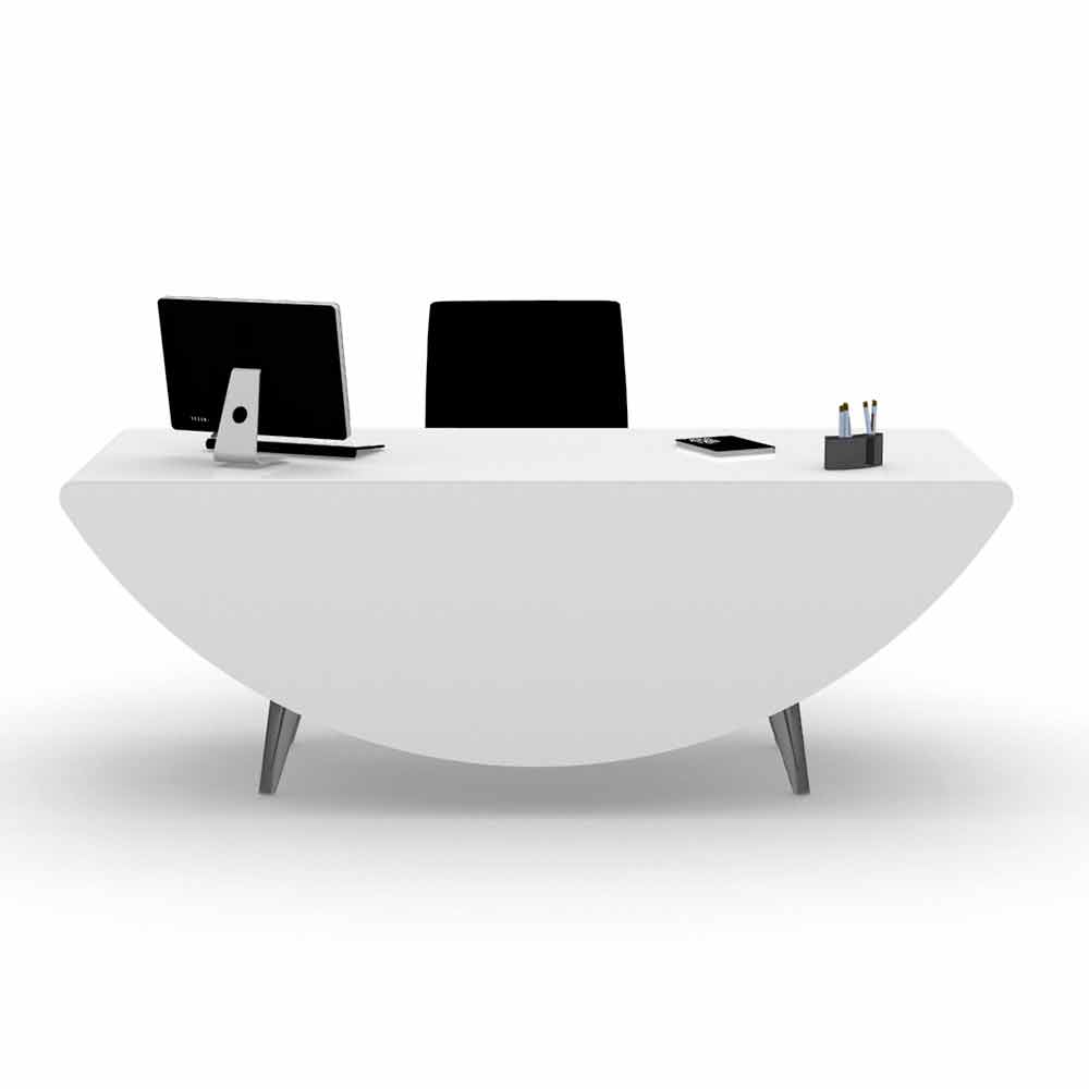Milis is een fantastisch bureau dat door zijn halvemaanvorm sterk doet denken aan een wekker uit de jaren vijftig.