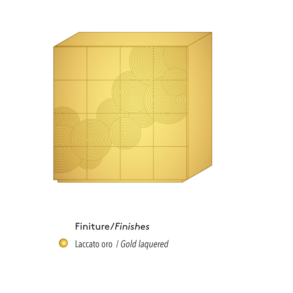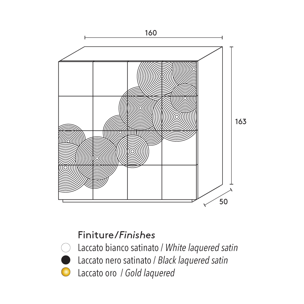 Dressoir met 8 gedecoreerde deuren met 4 interne planken van gelakt MDF, gemaakt in Italië.