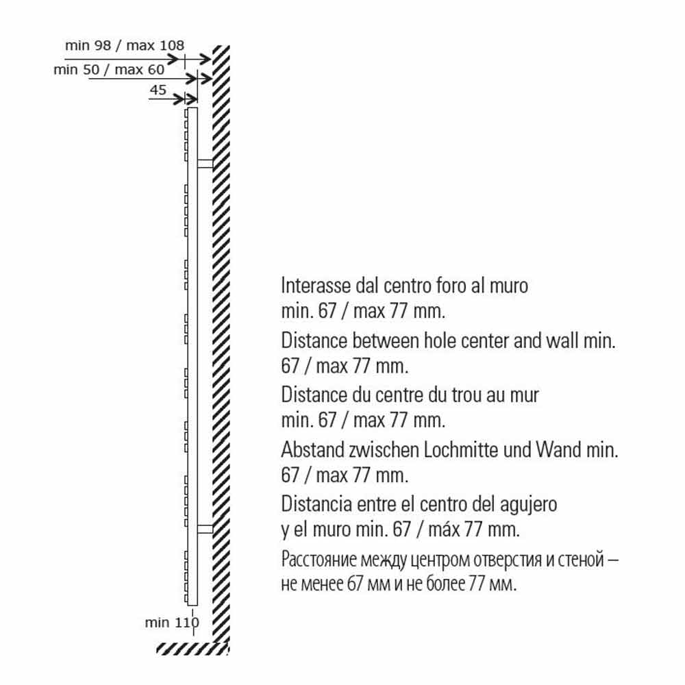 Hydraulische verticale design handdoekverwarmer van staal voor aan de muur, gemaakt in Italië.