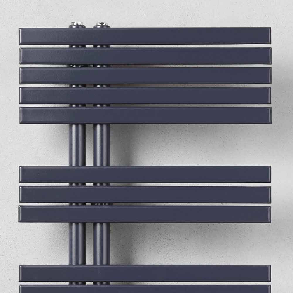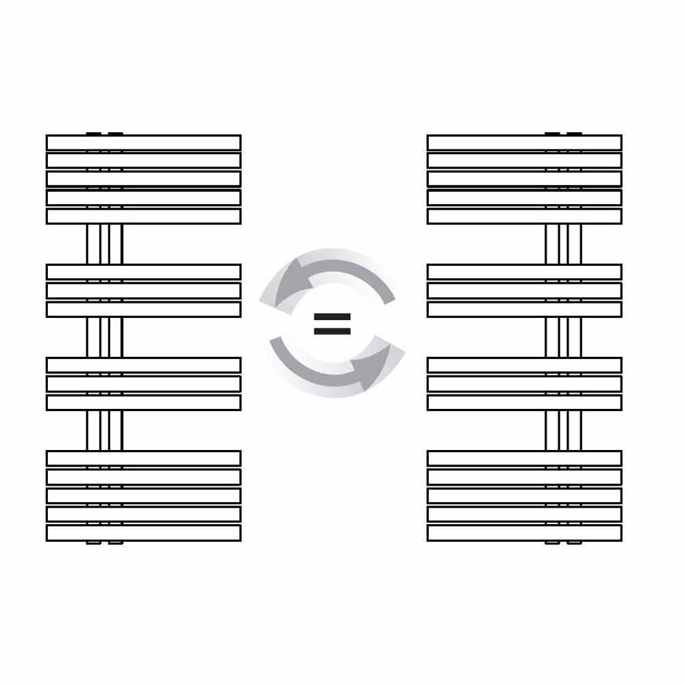handdoekverwarmingsradiator heeft een ontwerp gemaakt met verticale buizen met een diameter van 35 mm en 35 mm horizontale platte latten. Zijn moderne en bijzondere vorm maakt het