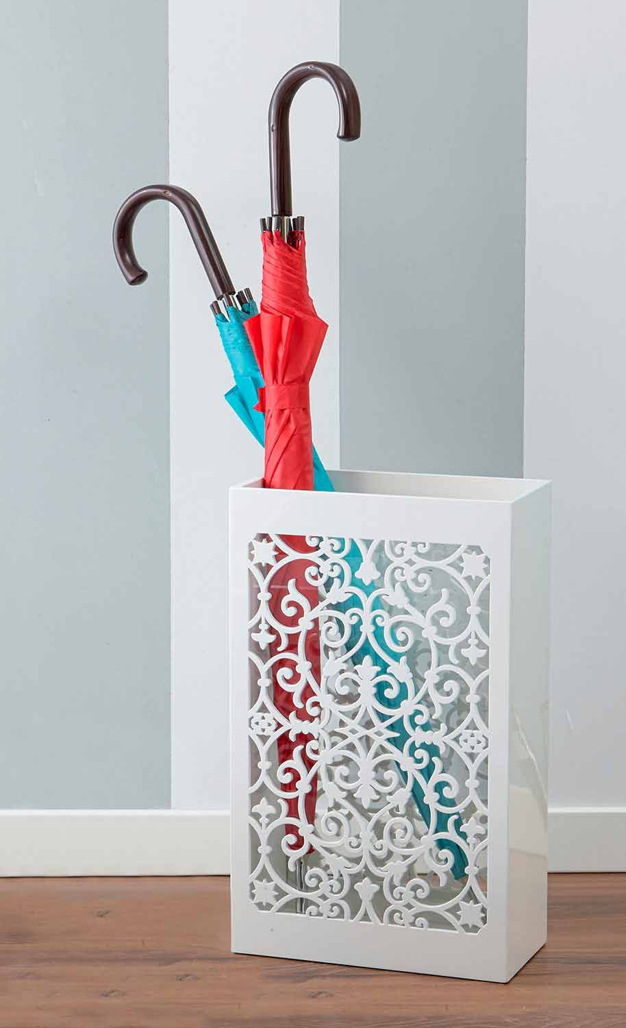 Vloerparaplubak in wit, grind, duifgrijs of zandvormig hout met een modern design versierd met vlinders, gemaakt in Italië.