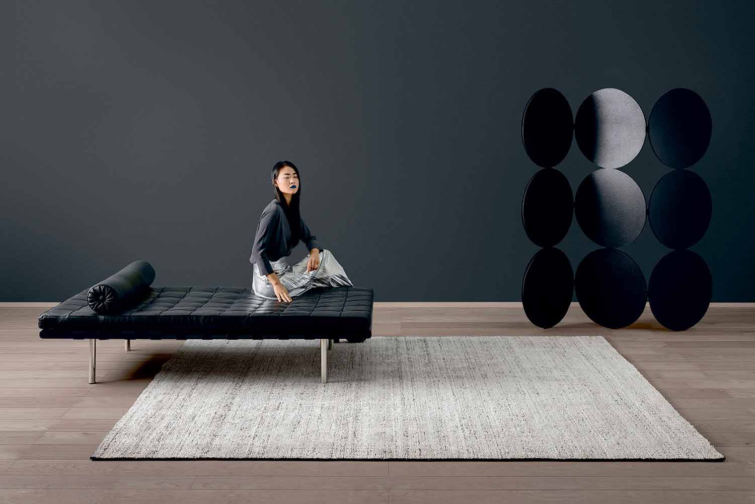 Deze lijn van handgeknoopte tapijten is afkomstig uit het samengaan van de hand gekaard bamboe zijde, wol en katoen.