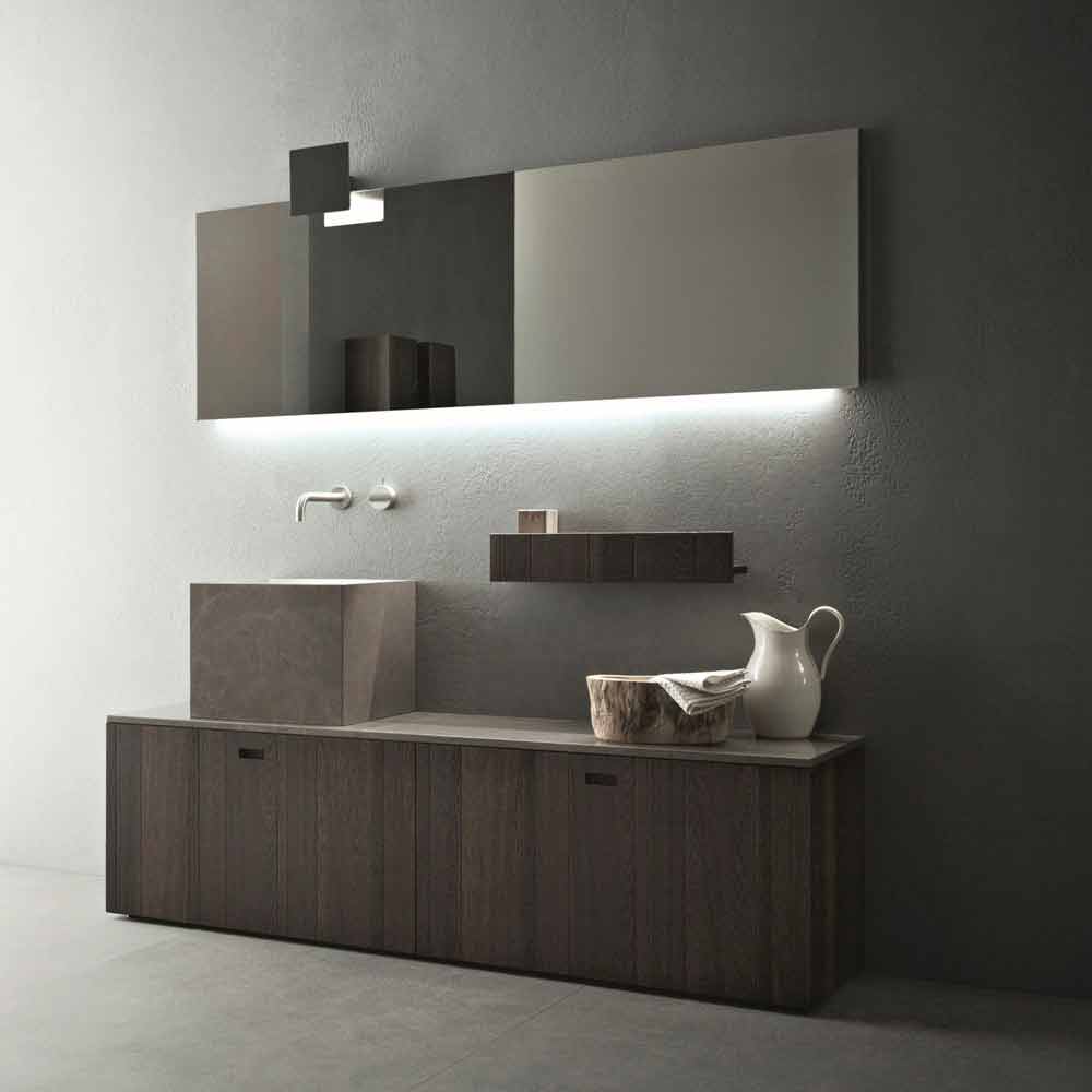 Moderne compositie van badkamermeubels, grondontwerp gemaakt in Italië.