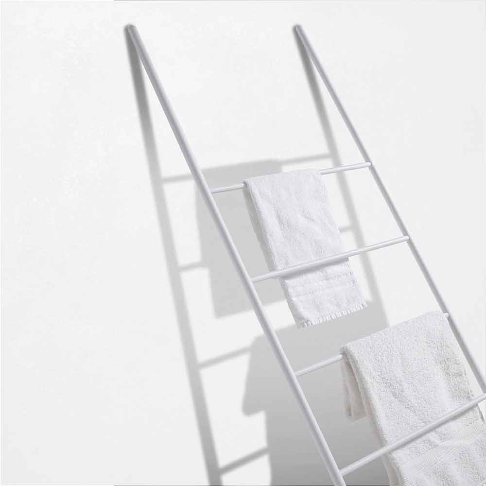 Modern design badkamerhanddoekladder in wit of zwart metaal.