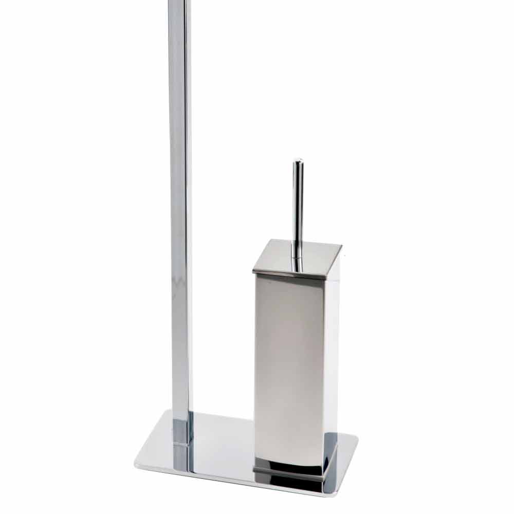 Vloerstandaard voor rol- en toiletborstel gemaakt in Italië met verchroomde ijzeren structuur. Gekenmerkt door zachte en ronde lijnen , wat dit meubelaccessoire met een verfijnde smaak uniek maakt, is zijn onmiskenbare eenvoud die zijn elegantie en sterke persoonlijkheid onderstreept.