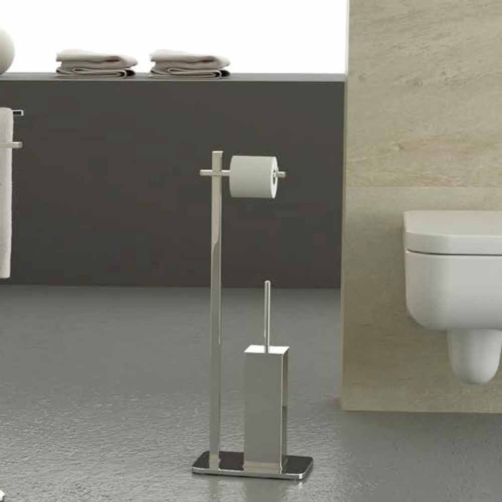 Moderne vrijstaande rol en toiletborstel in verchroomd ijzer Made in Italy.
