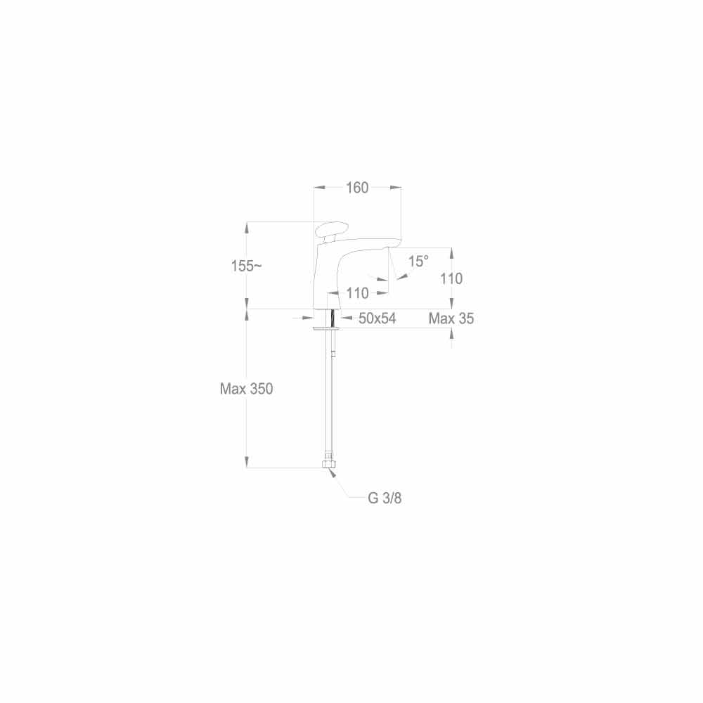 Aanrecht wastafelmengkraan van ultramodern en avant-gardistisch design 155 mm hoog en 110 mm hartafstand.